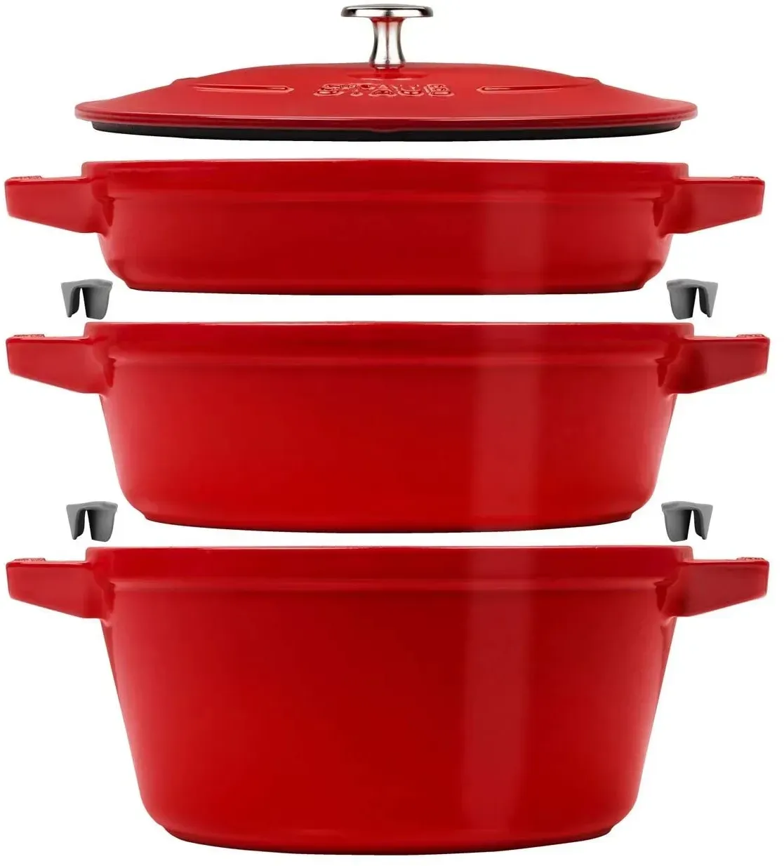 Verfügbarkeit: Auf Lager - Kategorie: Töpfe - Staub - GTIN:3272340054365 - Staub La Cocotte Kochtopfset, 3-tlg rund Gusseisen Schwarz - 306,17 Euro bei Amazon Marketplace Kitchen - gefunden von billiger.de Ein hochwertiges 3-teiliges Set in Kirschrot, das durch seine Qualität und das klassische Design besticht. ![]() ![]() Staub Cocotte Kochtopfset 3-teilig Gusseisen rund 24 cm Kirschrot (3272340054549)