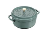 Staub - EAN: 3272341024251 - Die Cocotte von STAUB im klassischen Schwarz vereint traditionelle Handwerkskunst mit moderner Funktionalität für einen einmaligen Genuss. Gefüllte Paprikaschoten, klassische Kohlrouladen, mediterranes Ratatouille, süße Desserts sowie frisches Brot und mehr in diesem praktischen Gusseisentopf können die verschiedensten Gerichte zubereitet werden. Da das besondere Material nur wenig Fett zum Braten bedarf und der Schmortopf zugleich eine einzigartige Struktur aufweist, können die köstlichen Speisen kalorienarm gekocht werden und überzeugen mit ihren vollen Aromen und Nährstoffen. Durch die mattschwarze Emaille wird der Geschmack der Gerichte intensiviert, während das Gusseisen für eine optimale Hitzeverteilung sorgt. Sowohl Profi- als auch Hobbyköche finden in dem energiesparenden Iron Cast Topf einen langlebigen Helfer. Bei bis zu bis 250 C hitzebeständiger Deckelknauf aus Messing. Geeignet für Induktions-, Gas-, Elektro- / Stahlplattenherd, Glaskeramikkochfeld, Backofen. Volumen: 3,7 L, Gewicht: 4,6 kg. Maße mit Deckel und Griffen (LxH): 30 x 15,3 cm, Durchmesser: 24 cm, Boden: 19,2 cm - bei zwilling.com - aus Yadore Produktdaten Diese Cocotte in Eukalyptus für 199 Euro ist eine weitere stilvolle Farboption. ![]() ![]() Staub La Cocotte Cocotte 24 cm, rund, Eukalyptus, Gusseisen