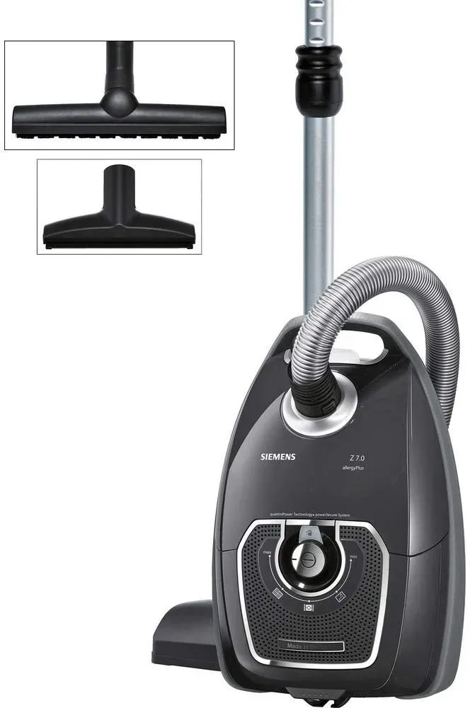 Kategorie: Staubsauger - Siemens - GTIN:4242003607916 - Der Q 5.0 extreme silencePower - Alles außer gewöhnlich: Besonders leise und dabei erstaunllich stark. - 159,99 Euro bei voelkner - gefunden von billiger.de Der Siemens VSZ7A400 Z 7.0 ist ein leistungsstarker Bodenstaubsauger mit XXL-Polsterdüse, ideal für Haushalte mit Haustieren. ![]() ![]() SIEMENS VSZ7A400 Z 7.0 Bodenstaubsauger mit Beutel Polsterdüse XXL, 650 W schwarz, Taupe, leise 69dB(A)