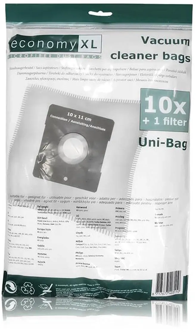 EAN: 8711564074483 - economyXL 10 Staubsaugerbeutel + 1 FilterArtikelbeschreibung:Hergestellt aus Filtervlies Bessere Filtration, LuftreinigungHöhere Saugleistung des GerätesWeicheres MaterialStaubbeutel aus Microfiber haben eine deutlich längere Verwendungsdauer durch eine ungefähr doppelte Staubaufnahmekapazitat.Durch das einzigartige Filter-System verfügen Variant-Staubsaugerbeutel über eine dauerhafte, gleich bleibend hohe Saugkraft.Anschluss: 10*11 cm passend für:Solac 917Ersatztyp der Marke economyXL, keine Original Herstellerbeutel. - bei kaufland.de - aus Yadore Produktdaten Dieses Angebot ist eine gute Wahl für Besitzer des Solac AB 2845 Beagle Friend, da es 10 kompatible Staubsaugerbeutel zu einem fairen Preis bietet. ![]() ![]() 10 Staubsaugerbeutel kompatibel mit Solac AB 2845 Beagle Friend