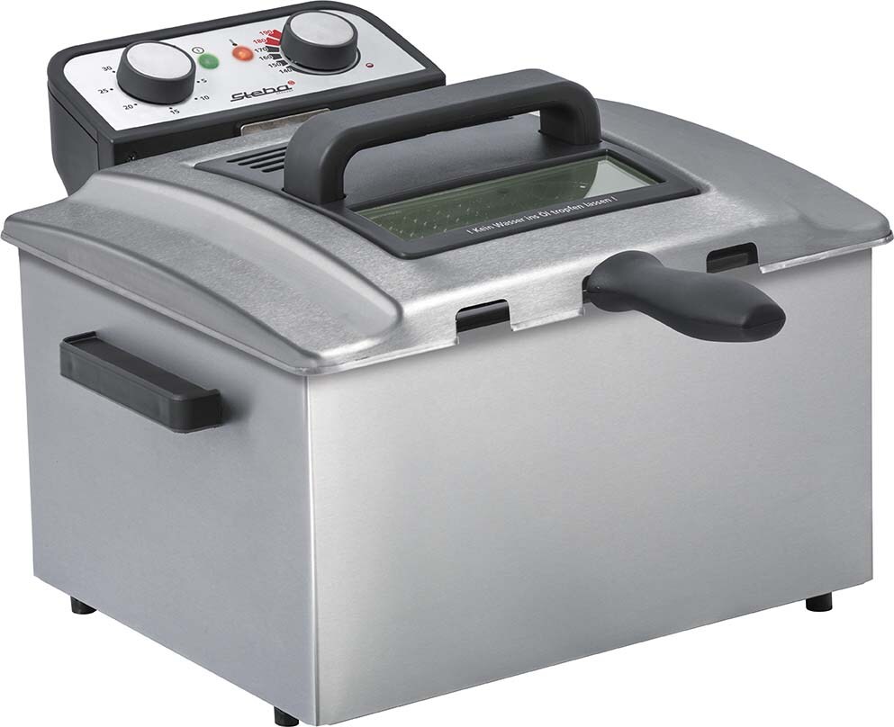 Auf Lager Versand durch AmazonSteba Fritteuse aus Edelstahl DF 300 | 5 Liter für bis zu 1,5?kg | Fritteuse mit Fett, XXL Frittierkorb, 3 Körbe | Deep Fryer für Zuhause, Friteuse mit entnehmbarem Behälter