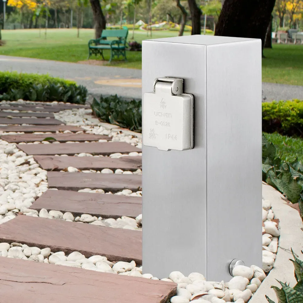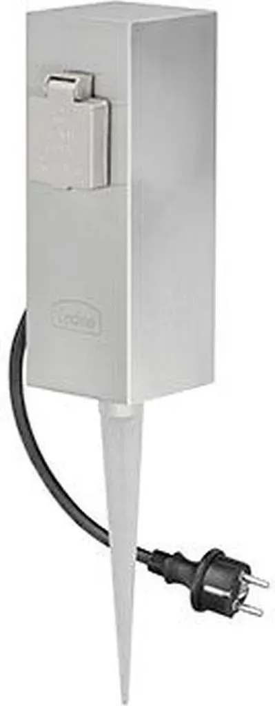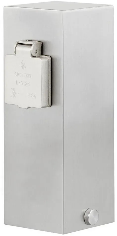 4 Händlerangebote bei billiger.de - Kategorie: Sonstige Elektroinstallationsartikel - LEDINO - Beschreibung Steckdosenpfosten mit vier Steckdosen für den Außenbereich. Dieser wetterfeste Energieverteiler besteht aus Edelstahl, dank der IP44 Schutzart ist er gegen Spritzwasser geschützt und somit optimal für den Einsatz im Außenbereich geeignet. Ideal für den Rasen im Beet oder andere Böden zum sicheren Anschluss typischer Gartengeräte geeignet, wie z.B. Rasenmäher, Rasensprenger oder Gartenleuchten. Details €¢ Produkttyp: Steckdosenpfosten €¢ Material: Edelstahl, pulverbeschichtet €¢ Farbe: schwarz €¢ 4 Steckdosen mit Klappdeckel €¢ Schutzart: IP44 €¢ inkl. Bohrschablone €¢ Gesamt max. 3500 Watt €¢ Stromversorgung: 220-240V, AC 50-60Hz Maße und Gewicht €¢ Länge x Breite x Höhe in cm: 18 x 9,5 x 46 €¢ Gewicht: 2,7 kg Material: Edelstahl 4 Steckdosen mit Klappdeckel spritzwassergeschützt Gesamt max. 3500 Watt - GTIN:4038104149086 Eine Edelstahl-Steckdosensäule mit Erdspieß und 2 Steckdosen, die eine stilvolle und flexible Stromversorgung im Garten ermöglicht. ![]() ![]() Licht-Erlebnisse Steckdosensäule Edelstahl mit Kabel Erdspieß 2-fach Verteiler IP44 NIKKI Energiesäule Garten außen - Bunt