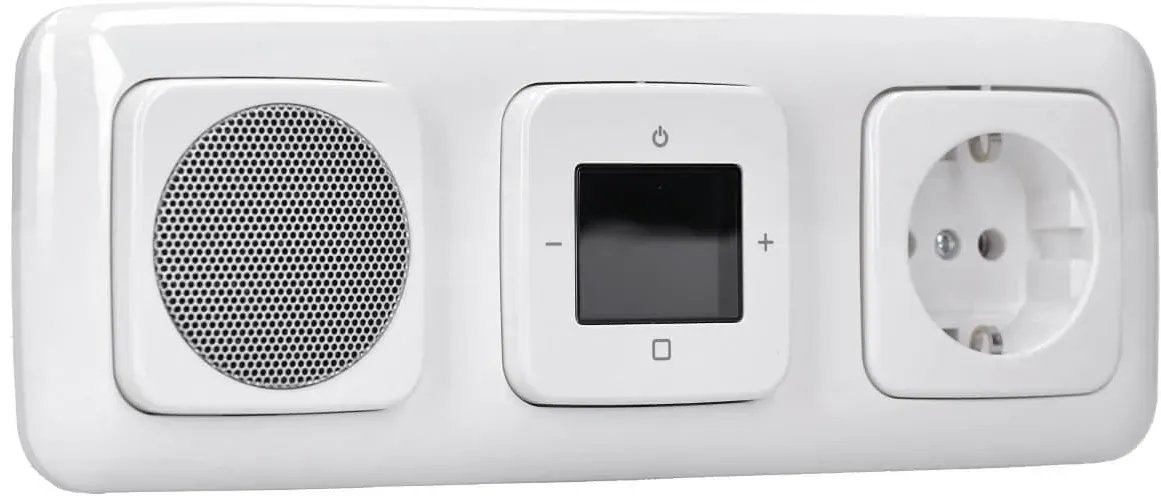 Kategorie: Tuner - Voltking - GTIN:4260741337520 - Funktionen im überblick: DAB+ und RDS-Stereo-Radiowecker zur Unterputzmontage | Mit hochauflösendem Farbdisplay zur Anzeige von Zusatzinformationen | Empfangsfrequenz: 87,50 MHz - 108,00 MHz | Empfangsfrequenz (DAB+): 174 MHz 240 MHz | Mit externem AUX Ein-/Ausang, umschaltbar | Für Mono-/Stereobetrieb 8 Radioprogramme speicherbar | Mit Uhrzeit und Datumsanzeige | Mit individueller Weck- und Snooze Funktion | Mit automatischer Ausschaltfunktion (Sleep-Automatik) | Mit Nebenstelleneingang zum ferngesteuerten EIN-/AUS-Schalten | Mit integrierter Antenne | Mit zusätzlichem Anschluss für externe Antenne Zulässige Lautsprecherimpedanz: 4 - 8 Ohm | Montage in 1-fach- als auch Mehrfachkombinationen möglich | Bedienelemente: 4-Tasten Bedienung über Schwimmende Wippe | Anzeigeelemente: IPS Grafikdisplay mit 280 DPI Nennspannung: 230 V~, +10 % / -10 % | Nennfrequenz: 50 Hz / 60 Hz | Verlustleistung: 0,4 W | Steuer-/Signalausgänge: 2 Lautsprecherausgang, Impedanz 4 Ohm | Nennleistung: 2 W (RMS) | Schutzart Gerät: IP 20 | Temperaturbereich Gerät: 5 C - 40 C | Lagertemperaturbereich: -20 C - 70 C | Maße (HxBxT): 71mmx71mmx47mm | Einbautiefe: 32mm | Keine Spreize | Schraubbefestigung über Schlüssellöcher Lieferumfang: 1x Busch-Radio DAB+ 8215 U-101, 1x Lautsprecher-Einsatz 8223 U, 1x Zentralscheibe 8253-214, 1x Zentralscheibe 8252-214-101, 1x Schuko-Steckdose 20 EUCH-214, 1x 3-fach Rahmen 2513-214 - 192,49 Euro bei Amazon Marketplace ... Dieses Großpack mit 100 Stück ist ideal für professionelle Anwender oder sehr große Projekte. ![]() ![]() Busch-Jaeger Reflex SI Steckdose 20 EUC-214 BULK (Alpinweiß, Metall, Unterputzmontage, Gesamtstückzahl: 100 Stk.)