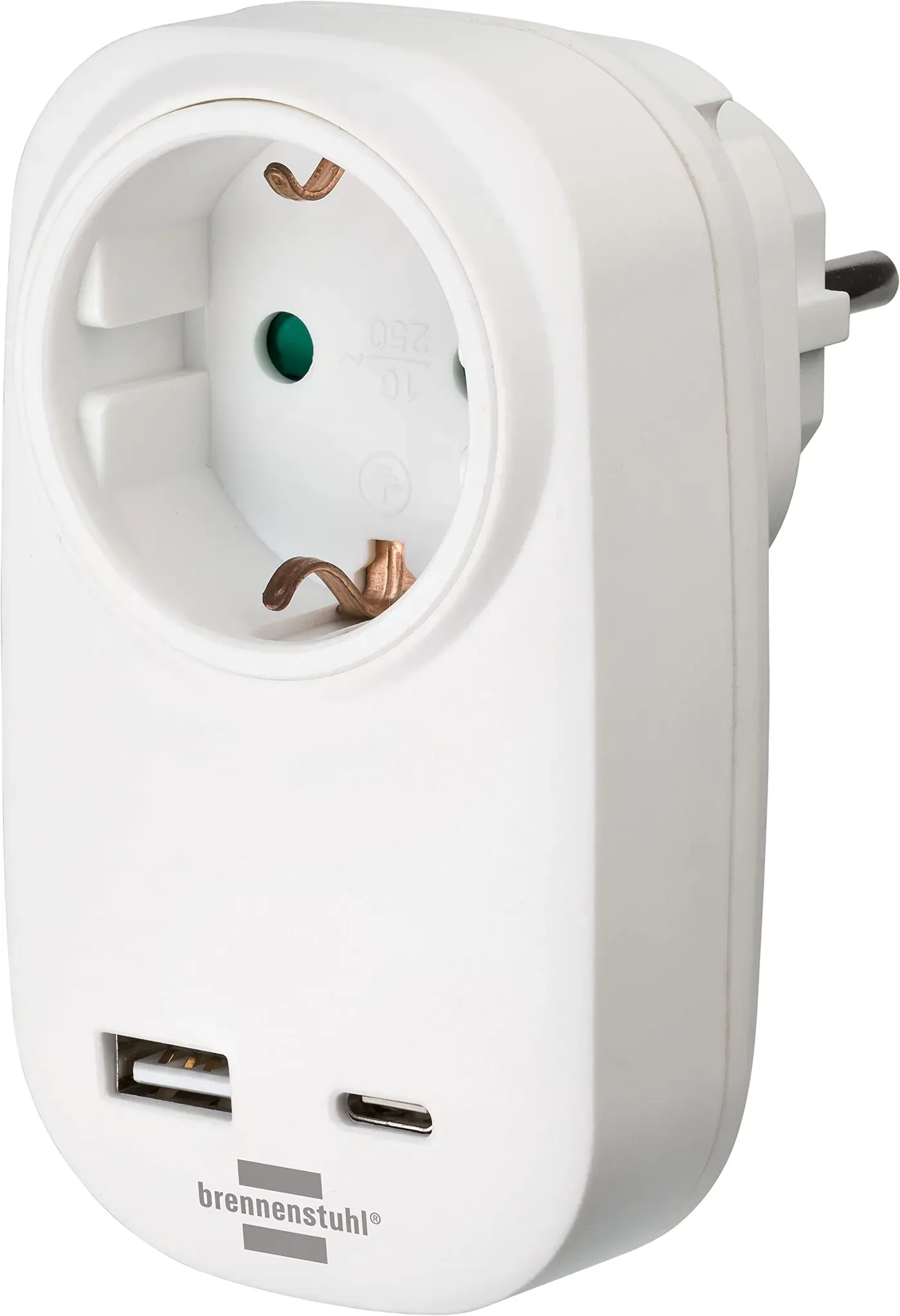 Auf Lager Versand durch AmazonBrennenstuhl Steckdosenadapter mit USB C Power Delivery und USB A (USB Steckdosenadapter zum Schnellladen, 1x USB C Power Delivery 20W, 1x USB A 18W)