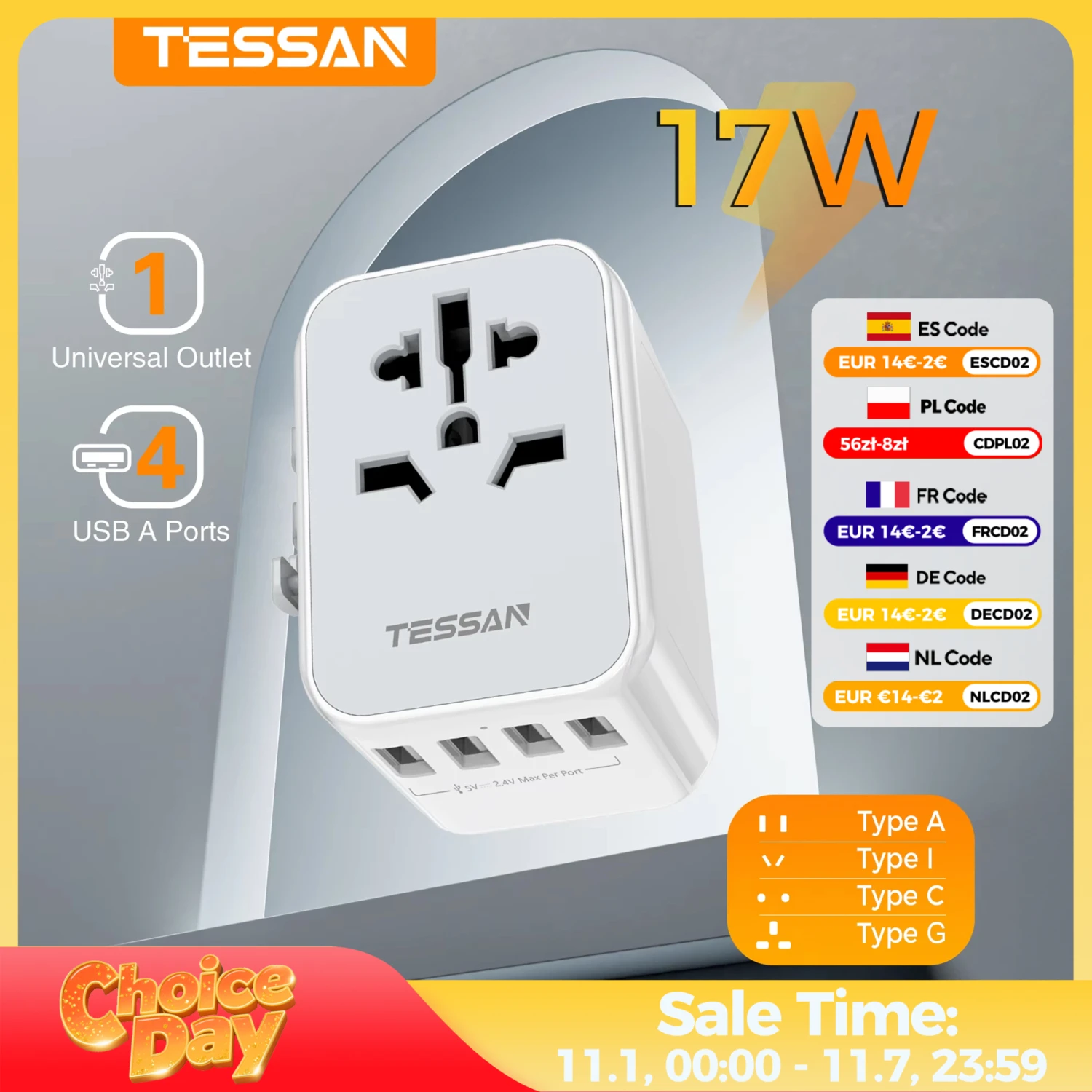 Der angezeigte Preis könnte seit dem letzten Update gestiegen sein - TESSAN Mehrere Steckdosenverlängerung mit 3 Steckdosen, 2 USB, 1 Typ C, Würfel-Steckdosenadapter mit Schalter, überlastschutz - Zustand: NEW - bei Aliexpress DE - gefunden von Buycentral Dieser TESSAN Universal-Reiseadapter ist perfekt für Vielreisende, da er in vielen Ländern funktioniert und zusätzliche USB-Ladeports bietet. ![]() TESSAN Universal-Reiseadapter mit 3 USB, 1 USB C, internationaler Steckdosenadapter für Deutschland, USA, England, Australien