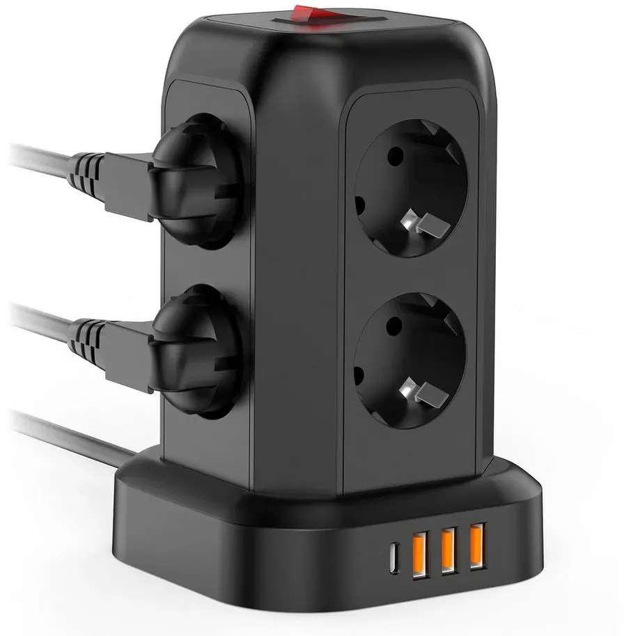 Kategorie: Steckdosen - aouoo - 14 in 1 steckdosenturme : Unsere 8 Fach Mehrfachsteckdose, Sie mehrere Geräte gleichzeitig anschließen können. Diese Funktion ist besonders nützlich, wenn Sie nur wenige Steckdosen zur Verfügung haben, mit 8 AC Steckdosen (Max 3840W/16A) und 3 USB Anschlüsse (Max 5V/3.8A) und 3 Type-c (Max 5V/3.8 A) mit Steckdosenleiste überspannungsschutz 3840W/16A, Schnelle Stromversorgung von bis zu 14 Geräten gleichzeitig, wenn Sie sie brauchen, einer Ladestation mit Schalter können Sie alle Steckdosen mit einem Tastendruck ein oder ausschalten. Perfekteres Material :Steckdosenadapter mit Verlängerungskabel 2M, Hergestellt aus feuerfestem PC-Material mit überspannungsschutz, das Hochtemperatur-Glühdrahtexperiment bei 800 C bestanden, Es ist sehr hitzebeständig und schwer entflammbar für Steckdose ist für die Erdung von Schutzkontaktsteckdosen nach deutscher Norm (Durchmesser 4,8 mm) geeignet, Die Kontakte sind alle aus Kupfer. Kompakte Bauweise :Mehrfachsteckdosen steckdosenturm mit schalter, das 2M Kabel lässt sich flexibel drehen, Sie müssen sich keine Sorgen mehr machen, da das gesamte System ordentlich in engen Räumen und Ecken verstaut werden kann. Und Ein Hauptschalter zur Steuerung der Mehrfachsteckdose kann Ihnen Zeit sparen, Küchen und Büros, machen und den Platz maximieren. Sicherheitszertifizierung & kindersicheres :Der Steckdose mehrfachstecker verfügt über eine integrierte Kindersicherung, die mehr Sicherheit für Kinder bietet und sie vor ... Dieser Steckdosenturm bietet eine Vielzahl von USB-Anschlüssen (2x USB-A, 2x USB-C) und umfassenden Schutzfunktionen. ![]() ![]()