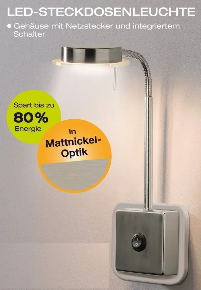 ![]() ![]() TRANGO LED Steckdosenleuchte, 2605 LED Steckerleuchte, Wandleuchte, Leselampe, Küchenlampe, Nachtlicht in Nickel matt inkl. 5 Watt LED Modul warmweiß 3000K Leuchtmittel, Wandlampe, Küchenlampe