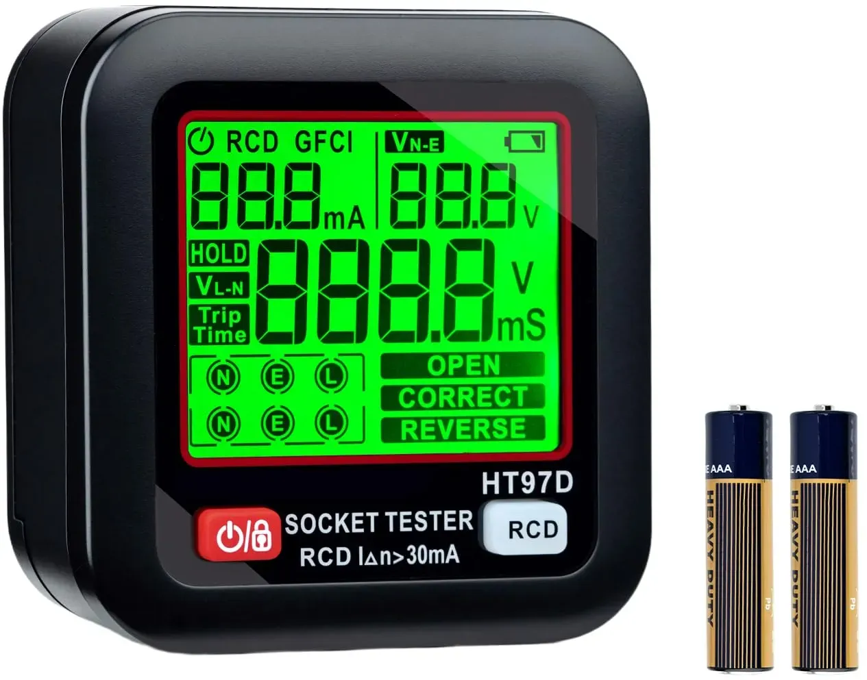 Zustand: Neu - Stromprüfer - DEWENWILS - - - Einfache und sichere Bedienung: Auch Laien können mit dem Steckdosentester den Spannung-, Verdrahtungszustand schnell und genau überprüfen, aktiv RCD testen, Ableitspannung und Ableitstrom entdecken. Die leicht verständlichen Zeichen ersparen Ihnen die Zeit und die Kosten für den Anruf bei einem Elektriker und bieten Ihnen jederzeit Sicherheit. Die kompakte Größe rt einen handlichen Griff und mühloses Ein-/Austecken. Das Risiko im Keim ersticken: Der Bildschirm zeigt Leitungsprobleme direkt an, nähmlich ‘ Erdungsunterbrechung ‘¡Nullunterbrechung ‘¢Phaseunterbrechung ‘£Phase/Erde vertauscht ‘¤Phase/Null vertauscht ‘¥Phase/Erde vertauscht und Erde Unterbrechnung. RCD-Pfrüng: Nach zweisekundenlangen Druck auf die RCD-Taste simuliert der Steckdosentester einen Erdeschluss und testet den RCD-Schutzschalter (Residual Current Device), um eine sichere elektrische Verkabelung festzustellen. Empfohlen sind die Standardsteckdosen parallel zu GFCI-Steckdosen. Bitte verwenden Sie diese Funktion vorsichtig bei normalen Steckdosen, um ein Auslösen der Hausverkabelung zu vermeiden Deutliche und verständliche Anweisung: Auf Deutsch gut und klar ausgedruckte Display werden korrekten Anschluss (RCD-Strom und -Spannung dargestellt) und vorliegende Fehler (Ableitspannung und Ableitstrom dargestellt) ersichtlich gezeichnet.Damit ist eine schnelle und genaue Feststellung der Verkabelungsfehler möglich und potenzielle Gefahr vermeidbar. Sicher und ... Dieser revolt Steckdosenprüfer bietet für 17,99 Euro ein Farb-Warn-Display, RCD-Test und Status-LEDs für eine intuitive Bedienung. ![]() ![]()
