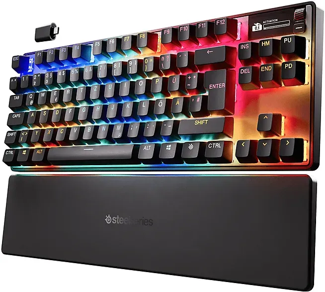 Zustand: Neu - Gaming-Tastaturen Gaming-Tastaturen für PC - SteelSeries - 64743 - EAN: 5707119058803 - DIE SCHNELLSTE TASTATUR ALLER ZEITEN - Unsere neu gestalteten Hall Effect Switches sind nicht nur schnell, sondern bieten auch eine 20 Mal schnellere Betätigung und eine 11 Mal schnellere Reaktionszeit sowie 40 einstellbare Betätigungsstufen. OMNIPOINT 3.0 - Überwinden Sie Limitationen mit den hochmodernen OmniPoint 3.0-Switches mit Rapid Trigger, dem Schutzmodus, Rapid Tap und umfassenden Anpassungsmöglichkeiten SOFORT EINSATZBEREITE PRESETS - Verschaffen Sie sich mit nur wenigen Klicks einen Wettbewerbsvorteil in Ihrem Lieblingsspiel, indem Sie die sofort einsatzbereiten Tastatureinstellungen von GG Quick Set verwenden. MINIMALE LATENZ - Mit Rapid Trigger und Rapid Tap werden Tasteneingaben schneller registriert und ein reaktionsschnelleres Gameplay und verbessertes Zielen ermöglicht. SCHUTZMODUS - Eine exklusive Funktion von SteelSeries - schützen Sie Ihre Inputs, indem Sie die Empfindlichkeit der umliegenden Tasten verringern, damit ein versehentliches Auslösen verhindert wird - bei Amazon.de Dieses Angebot von billiger.de ist eine weitere günstige Option für die TKL-Version mit deutschem Layout. ![]() ![]() SteelSeries Apex Pro TKL Gen 3 OmniPoint 3.0 DE