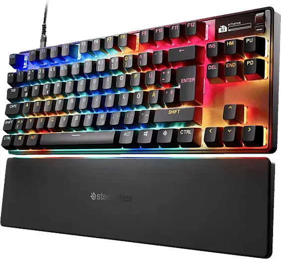 11 Händlerangebote bei billiger.de - Kategorie: Tastaturen - SteelSeries - DIE SCHNELLSTE TASTATUR ALLER ZEITEN - Unsere neu gestalteten Hall Effect Switches sind nicht nur schnell, sondern bieten auch eine 20 Mal schnellere Betätigung und eine 11 Mal schnellere Reaktionszeit sowie 40 einstellbare Betätigungsstufen. OMNIPOINT 3.0 - überwinden Sie Limitationen mit den hochmodernen OmniPoint 3.0-Switches mit Rapid Trigger, dem Schutzmodus, Rapid Tap und umfassenden Anpassungsmöglichkeiten SOFORT EINSATZBEREITE PRESETS - Verschaffen Sie sich mit nur wenigen Klicks einen Wettbewerbsvorteil in Ihrem Lieblingsspiel, indem Sie die sofort einsatzbereiten Tastatureinstellungen von GG Quick Set verwenden. MINIMALE LATENZ - Mit Rapid Trigger und Rapid Tap werden Tasteneingaben schneller registriert und ein reaktionsschnelleres Gameplay und verbessertes Zielen ermöglicht. SCHUTZMODUS - Eine exklusive Funktion von SteelSeries €“ schützen Sie Ihre Inputs, indem Sie die Empfindlichkeit der umliegenden Tasten verringern, damit ein versehentliches Auslösen verhindert wird - GTIN:5707119058803 Dieses Angebot von Media Markt ist eine sehr preiswerte Option für die TKL-Version der Tastatur. ![]() ![]() STEELSERIES Apex Pro TKL GEN3, Gaming Tastatur, Mechanisch, Sonstiges, Kabelgebunden, Schwarz