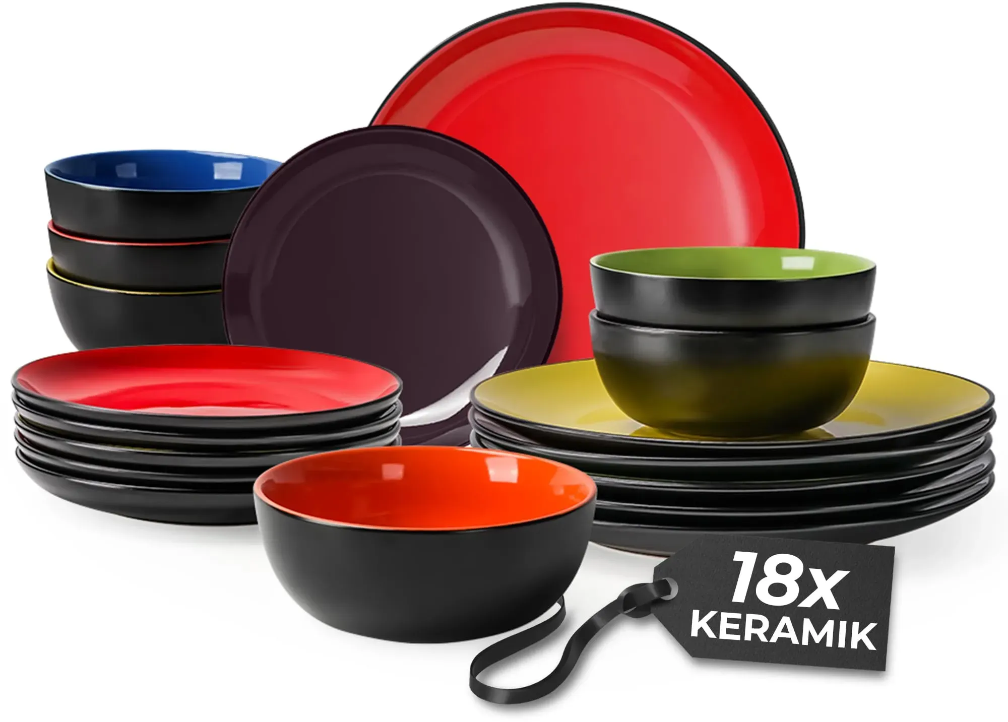 Gesamtsortiment Wohnen Geschirr + Bar Geschirr Geschirrset Geschirr & Besteck - EAN:8424002028725 - Das Sushi-Set von DKD Home Decor vereint Funktionalität und ästhetisches Design in einem ansprechenden Paket. Mit einem orientalischen Mandala-Muster und einer bunten Farbgestaltung bringt dieses Set einen Hauch von Exotik in Ihre Küche. Es besteht aus 16 Teilen, die ideal für Sushi-Liebhaber sind und sich perfekt für gesellige Abende oder besondere Anlässe eignen. Die Verwendung von Steingut und Bambus sorgt nicht nur für eine ansprechende Optik, sondern auch für Langlebigkeit und einfache Handhabung. Das Set ist spülmaschinenfest und mikrowellengeeignet, was die Reinigung und Nutzung erleichtert. Es ist für alle Küchentypen geeignet, mit Ausnahme von Induktionsherden, und bietet somit Vielseitigkeit in der Anwendung. Dieses Sushi-Set ist eine hervorragende Wahl für alle, die Wert auf stilvolles Geschirr legen und gleichzeitig praktische Lösungen für den Alltag suchen. - Orientalisches Mandala-Design für eine ansprechende Ästhetik - Geeignet für alle Küchentypen ausser Induktionsküchen - Spülmaschinen- und mikrowellenfest für einfache Reinigung und Nutzung - Hergestellt aus langlebigem Steingut und Bambus. - gefunden von Kelkoo Ein erschwingliches 18-teiliges Geschirrset für 6 Personen, das kratzfest, ofen-, spülmaschinen- und mikrowellenfest ist. ![]() ![]()