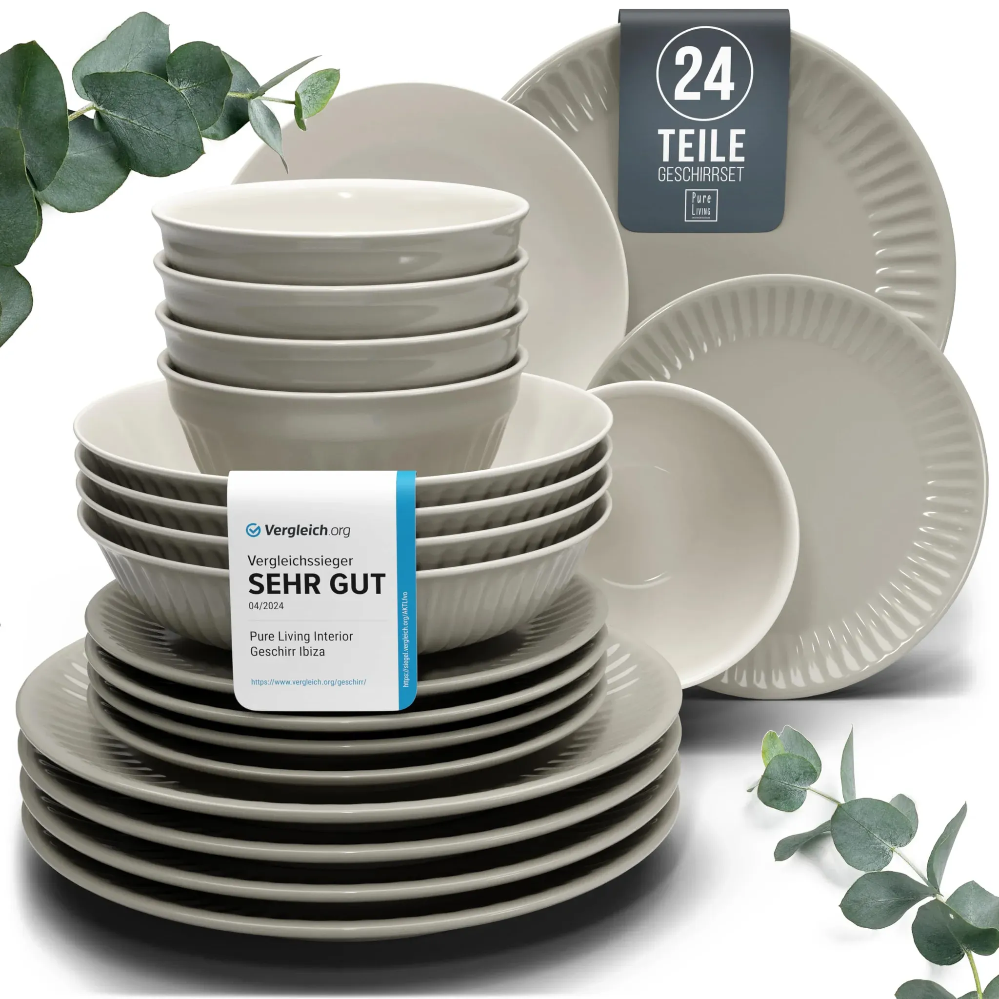 Kategorie: Services - PURE LIVING INTERIOR DESIGN - GTIN:8720364106782 - Scandi Design: Unser Geschirrset besticht durch ein elegantes Farbspiel und eine dezente Riffelstruktur,die Ihrem Tisch einen modernen und zugleich stilvollen Look verleiht. Die harmonisch abgestimmten Farben machen jede Mahlzeit zu einem Erlebnis. Langlebiges, Hochwertiges Steingut: Gefertigt aus robustem Steingut, bietet unser Geschirrset nicht nur eine lange Lebensdauer, sondern auch eine hohe Widerstandsfähigkeit gegen Kratzer. Es ist ideal für den täglichen Gebrauch. Alltagstauglich und Praktisch: Das Geschirrset ist spülmaschinenfest und mikrowellengeeignet, was die Handhabung im Alltag erleichtert und Zeit spart. Für schnelle Mahlzeiten unter der Woche oder ein gemütliches Dinner am Wochenende. Vollständig Ausgestattet für jede Mahlzeit: Mit 6 großen Tellern, 6 kleinen Tellern, 6 Schüsseln und 6 tiefen Tellern bietet unser Set alles, was Sie für ein stilvolles Essen mit bis zu 6 Personen benötigen. Beeindrucken Sie Ihre Gäste:Das zeitlose Design und die edlen Farben des Geschirrsets machen es zum Highlight auf jedem Esstisch. Elegante Details und hohe Funktionalität sorgen dafür,dass Ihre Tischdekoration einen bleibenden Eindruck hinterlässt. - 129,95 Euro bei Amazon Marketplace Home - gefunden von billiger.de Ein sehr umfangreiches 36-teiliges mediterranes Geschirrset für 12 Personen, ideal für größere Haushalte oder besondere Anlässe. ![]() ![]() PURE LIVING INTERIOR DESIGN Steingut Geschirrset 12 Personen Ibiza 36 tlg. TESTSIEGER, Traumhaftes Mediterranes Steingut Geschirr Set, Schüssel- und Teller Set, Tafelservice 12 Personen, Geschirrsets Pure Living in Tiefblau