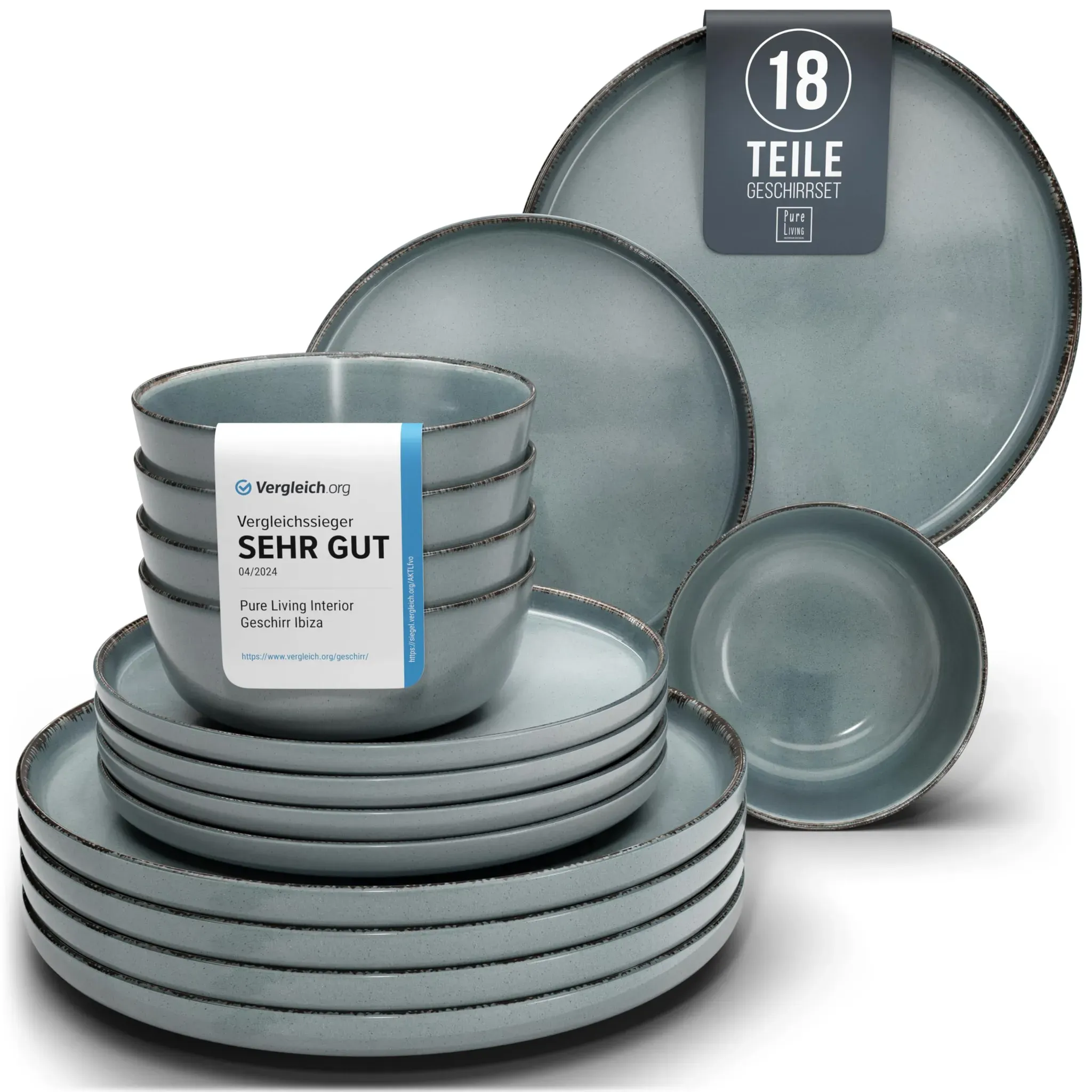 5 Händlerangebote bei billiger.de - Kategorie: Services - Ritzenhoff & Breker - Material Material , Steingut, Materialeigenschaften , lebensmittelecht mikrowellengeeignet, Optik / Stil Form Teller , rund, Optik , unifarben, Farbe , grau, Set-Bestandteile Frühstücksteller , 6 St., Speiseteller , 6 St., Suppenteller , 6 St., Maßangaben Durchmesser Speiseteller , 27 cm, Durchmesser Suppenteller , 20 cm, Tiefe Suppenteller , 5 cm, Durchmesser Frühstücksteller , 21 cm, Produktdetails Einsatzbereich , Haushalt, Anzahl Personen , 6, Eigenschaften , backofenfest, Hinweise Pflegehinweise , spülmaschinengeeignet, - GTIN:4006344320107 Ein hochwertiges 18-teiliges Landhausstil-Set für 6 Personen in Rauchblau, das Eleganz und Robustheit vereint. ![]() ![]() PURE LIVING INTERIOR DESIGN Steingut Geschirrset 6 Personen Rustic 18 tlg. TESTSIEGER, Hochwertiges Landhaussttil Steingut Geschirr Set, Schüssel- und Teller Set, Tafelservice 6 Personen, Geschirrsets Pure Living in Rauchblau