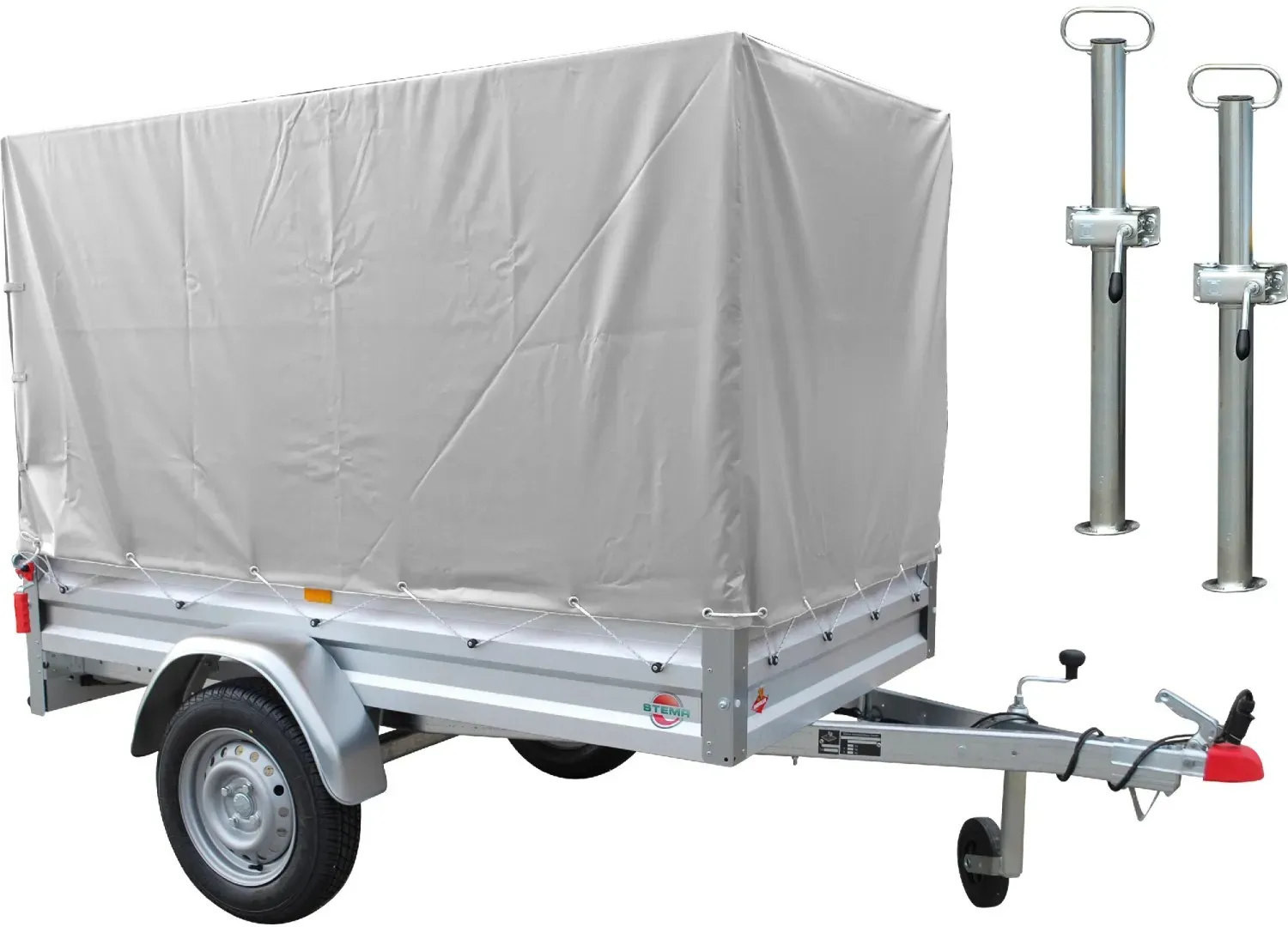 Kategorie: PKW-Anhänger - STEMA - GTIN:4024187136471 - Der Stema Anhänger Variolux 750 ist ein ungebremster Tieflader und Einachser mit einem maximal zulässigen Gesamtgewicht von 750 kg. Er eignet sich sowohl für die private als auch gewerbliche Nutzung auf Kurz- und Langstrecken, beispielsweise für Transporte rund um Haus, Hof und Garten. Auto-Anhänger mit Reling Die Ladefläche ist mit einer umlaufenden Reling versehen, die viele Verzurrmöglichkeiten, beispielsweise für eine Plane oder Sicherungsnetz (separat erhältlich) bietet. Die maximale Nutzlast liegt bei 609 kg. Eine zusätzliche Quertraverse im Rahmen dient als Bodenunterstützung und zur Stabilisierung der Ladefläche. Die 4 Verzurrhaken auf der Ladeflächen bieten zusätzliche Möglichkeiten der Ladungssicherung. Robuste & komfortable Ausstattung Der Autoanhänger ist mit Multifunktionsleuchten inkl. Nebelschlussleuchte ausgestattet. Der Boden des Anhängers besteht aus wasserfest verleimtem Mehrschichtholz mit phenolharzbeschichteter, rutschhemmender Oberfläche. Die Bordwände sind mehrfach gesickt, wodurch der Anhänger besonders robust und verwindungssteif ist. Die Aluminium-Zink Galvalume-Spezialbeschichtung der Bordwände und das feuerverzinkte Fahrgestell sorgen zudem für eine hohe Unempfindlichkeit gegen Witterungseinflüsse. Der Kunststoffschutz Red Nose auf der Kupplung schützt das Zugfahrzeug vor Beschädigungen. Der sichere Transport wird durch die V-Deichsel unterstützt. Stema - Anhänger mit Qualität aus ... ![]() ![]() Stema Anhänger-Set Variolux 750 inkl. Hochplanen-Set, Abstellstützen & Stützrad