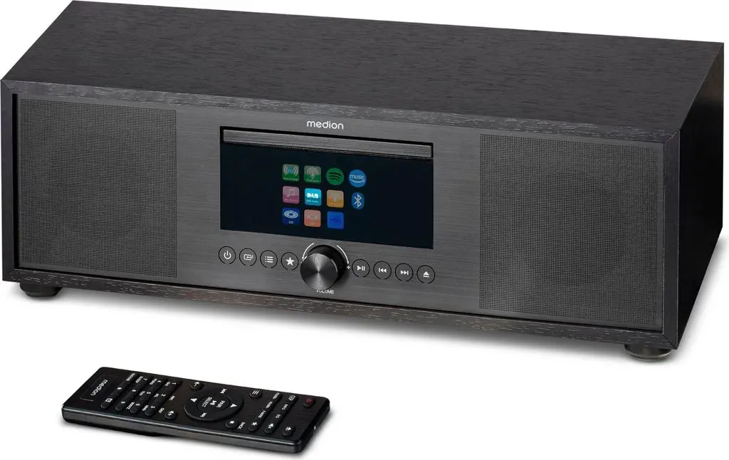 Kategorie: Radios - Medion - GTIN:4061275196573 - Die ganze Welt der MusikMit diesem Audiosystem holen Sie sich Musik ins Haus. Im schicken Gehäuse des kompakten Klangwunders schlummert nämlich eine enorme Vielfalt an Abspieloptionen. Per PLL-UKW- und DAB-Empfang hören Sie beispielsweise Ihre Lieblings-Radiosender oder holen sich Stationen aus aller Welt per Internetradio nach Hause. Zu Ihrem eigenen Programmchef werden Sie, indem Sie eigene Inhalte ganz unkompliziert von Tablet oder Smartphone abspielen. Zudem sind Amazon Music und Spotify Connect direkt integriert und ermöglichen die bequeme Widergabe Ihrer individuellen Playlists. Der eingebaute CD-Player rundet das starke Paket ab, das sich direkt am Gerät oder der Fernbedienung extra bequem steuern lässt. Radiotyp:InternetTunertyp:Analog & DigitalUnterstützte Bänder:AM, DAB+, FMAutom. digitales Tuning:JaRadio Data System (RDS):JaRMS-Leistung:80 WEingebaute Lautsprecher:JaAnzahl eingebauter Lautsprecher:3Eingebautes Display:JaDisplay-Typ:LCDBildschirmdiagonale:18 cm (7.1')Hintergrundbeleuchtung:JaWLAN:JaBluetooth:JaUSB Anschluss:JaLine-in:JaAUX-Eingang:JaAnzahl USB 2.0 Anschlüsse:1Playback MP3:JaProduktfarbe:AnthrazitInternet-Radio:JaInternetradio Services unterstützt:Amazon Music, SpotifyLautstärkeregler:DrehreglerEin-/Ausschalter:JaFernbedienung:JaEnergiequelle:ACIntegrierte Uhr:JaWecker:JaBreite:440 mmTiefe:260 mmHöhe:147 mmGewicht:5,15 kgMitgelieferte Kabel:ACFernbedienung enthalten:Ja - 129,95 Euro bei Kaufland.de ... Diese Lenco Stereoanlage bietet DAB+/FM-Empfang, CD/MP3-Spieler, Bluetooth und USB-Eingang für vielseitigen Musikgenuss. ![]() Lenco MC-150 - Stereoanlage mit DAB+/FM Empfang - CD/MP3-Spieler - Bluetooth® - USB-Eingang - 2 x 10 Watt RMS - Schwarz