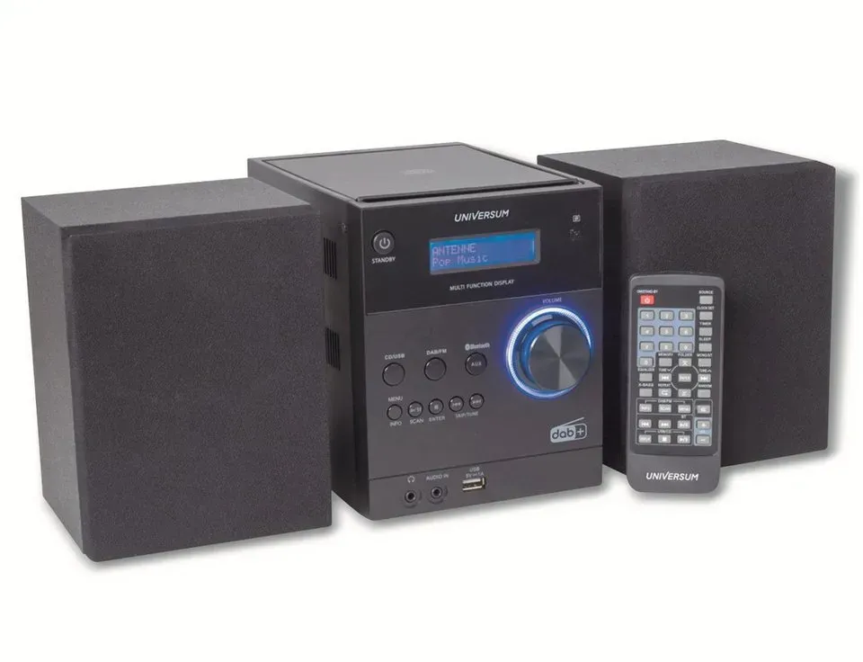 Kategorie: Musikanlagen - Universum - GTIN:4260473221425 - Technische Daten WEEE-Reg.-Nr. DE , 90515766, - 90,12 Euro bei OTTO - gefunden von billiger.de Diese Stereoanlage bietet ein gutes Preis-Leistungs-Verhältnis mit DAB+, Bluetooth, CD, USB und Weckfunktion. ![]() UNIVERSUM MS 300-21 Stereoanlage AUX, Bluetooth R , CD, DAB+, UKW, USB, Akku-Ladefunktion, Inkl. Fernbedienung, Inkl. Lautsprecherbox, Weckfunktion 2 x 5 W Silber