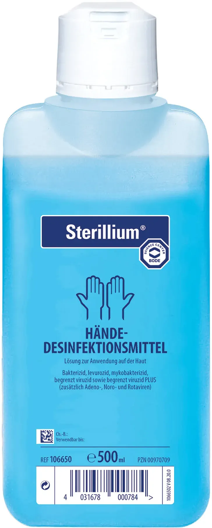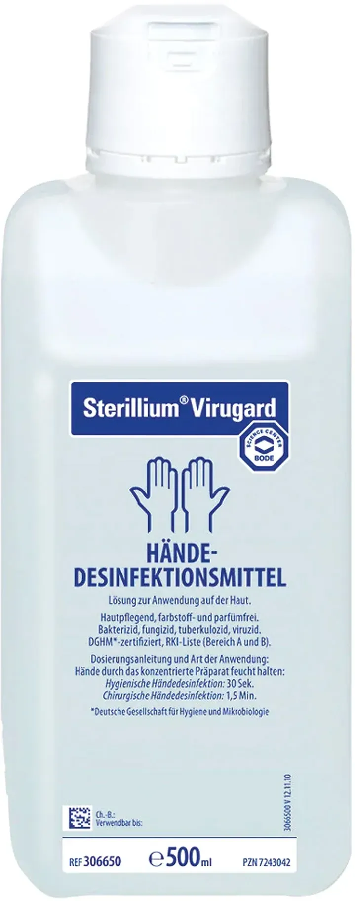 Zustand: Neu - 28,70 € / l - Handdesinfektionsmittel - Sterillium BODE CHEMIE - 9803900 - EAN: 0704679357228 EAN: 4031678034741 - PZN: 04817465 Produktmenge: 500ml Hersteller: PAUL HARTMANN AG - 37 Händler im amazon.de Marketplace Dieses Angebot ist mit 5.75 Euro eine günstige Option für die "Virugard" Variante. ![]() ![]() Hartmann Bode Sterillium Virugard Händedesinfektionsmittel 500 ml Flasche