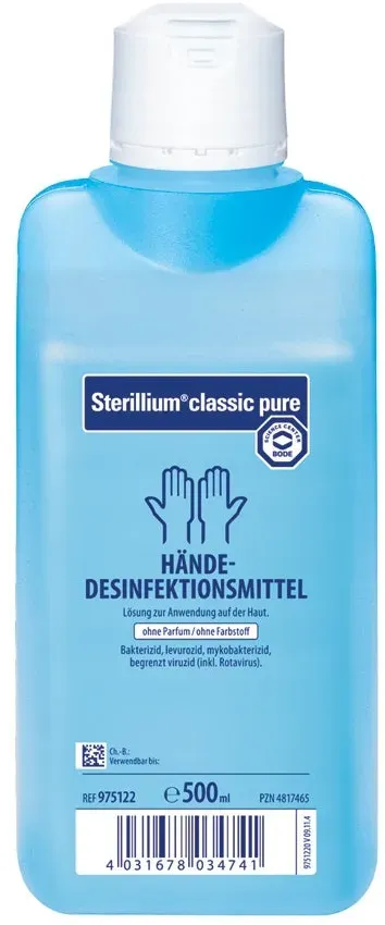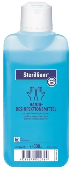 Sterillium 500 ml META PreisvergleichMit dem Meta-Preisvergleich suchen Sie gleichzeitig bei den großen Preisvergleich Portalen!Jetzt live Suche nach sterillium 500 ml starten! Sterillium 500 ml KaufberatungSterillium 500 ml - Kaufberatung und ProduktübersichtSterillium 500 ml ist ein bewährtes Händedesinfektionsmittel, das in verschiedenen Varianten erhältlich ist. Hier erhalten Sie einen umfassenden Überblick für Ihre Kaufentscheidung. Produktvarianten und MerkmaleDas Sterillium-Sortiment bietet mehrere Ausführungen: Sterillium Classic ist die Standardvariante mit umfassender Wirksamkeit gegen Bakterien, Pilze und behüllte Viren[1]. Die Einwirkzeit beträgt 30 Sekunden für hygienische Händedesinfektion und 1,5 Minuten für chirurgische Desinfektion[4]. Sterillium Classic Pure ist die farbstoff- und parfümfreie Variante[2], besonders geeignet für empfindliche Haut und Bereiche, in denen auf Zusatzstoffe verzichtet werden soll. Beide Varianten enthalten die bewährten Wirkstoffe Propan-2-ol (45,0 g), Propan-1-ol (30,0 g) und Mecetroniumetilsulfat (0,2 g) pro 100 ml[1][5]. Wichtige ProdukteigenschaftenDie beliebtesten Merkmale von Sterillium sind: