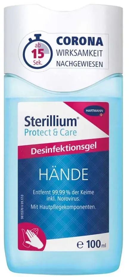 65.7 / l - Kategorie: Desinfektionsmittel - Hartmann - Sterillium Protect & Care Desinfektionsgel: Antibakterielles Hände-Desinfektionsmittel mit Pflege-Komponenten, 100 ml - 4er Pack - 26,28 Euro bei Amazon Marketplace Beauty - gefunden von billiger.de Dieses Angebot ist empfehlenswert für einen 4er-Pack 100 ml Gels, der einen guten Vorrat für den Haushalt bietet. ![]() ![]() Sterillium Protect & Care Desinfektionsgel: Antibakterielles Hände-Desinfektionsmittel mit Pflege-Komponenten, 100 ml - 4er Pack