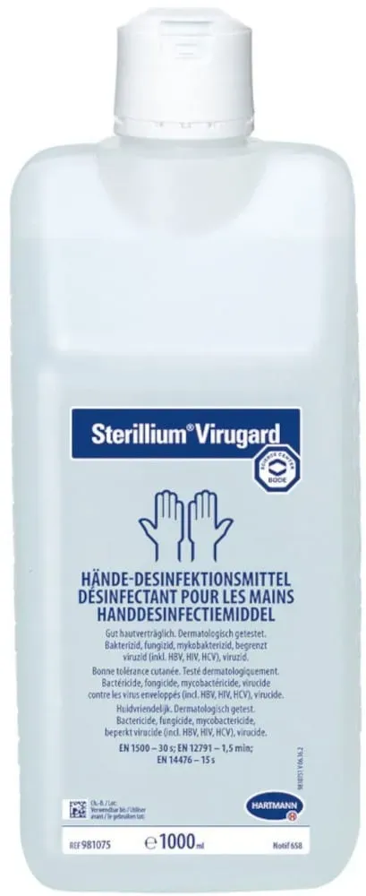 11.94 /l - Kategorie: Desinfektionsmittel - Hartmann - GTIN:4031678000265 - PZN:07243059 - STERILLIUM Virugard Händedesinfektion Lösung 1000 ml - 11,94 Euro bei Preisapo - gefunden von billiger.de Shop Apotheke DE bietet das Produkt für 11,99 Euro an, was ein guter Preis von einer der größten Online-Apotheken ist. ![]() ![]() Hartmann Sterillium Virugard Händedesinfektion Lösung 1000 ml