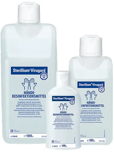 40 Händlerangebote bei billiger.de - Kategorie: Desinfektionsmittel - Hartmann - Die Sterillium Virugard Lösung enthält unter anderem Ethanol. Es ist ein hochwirksames Händedesinfektionsmittel zum Einreiben. Die Lösung ist wirksam gegen Pilze, Viren zum Beispiel Herpes simplex, Adeno-, Polyoma- und Rotavirus sowie gegen Bakterien. Die Sterillium Virugard Lösung wird vor allem in Arbeitsbereichen mit hoher Infektionsgefahr angewendet. Durch seine Rückstandsfreiheit ist es auch für die Lebensmittelverarbeitende- und pharmazeutische Industrie sehr interessant. Es enthält kein Farbstoff oder Parfüm und ist daher gut verträglich. - GTIN:4031678000265 - PZN:07243059 Die DocMorris Apotheke bietet das Produkt zu einem sehr attraktiven Preis von 9,59 Euro an, was eine gute Balance zwischen Preis und Vertrauenswürdigkeit darstellt. ![]() ![]() Hartmann Bode Sterillium Virugard Händedesinfektion 1 l, 1 Stück 1000 ml