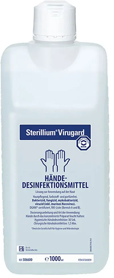 Sterillium virugard 1000 META PreisvergleichMit dem Meta-Preisvergleich suchen Sie gleichzeitig bei den großen Preisvergleich Portalen!Jetzt live Suche nach sterillium virugard 1000 starten! Sterillium virugard 1000 KaufberatungSterillium Virugard 1000 ml ist ein hochwirksames, viruzides Händedesinfektionsmittel, das speziell für hygienische und chirurgische Handdesinfektion in Bereichen mit erhöhtem Infektionsrisiko entwickelt wurde. Es wirkt umfassend gegen behüllte und unbehüllte Viren, darunter Noroviren, Enteroviren und Papillomaviren, und ist farbstoff- sowie parfümfrei[1][3][5]. Wichtige Produktmerkmale und Beliebtheit: