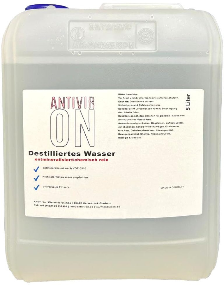 Kategorie: Medizinischer Bedarf - antivir on - GTIN:0756892118582 - Medizinische Anwendungen - Es wird zur Herstellung von Arzneimitteln, medizinischen Lösungen und für medizinische Untersuchungen verwendet. Laboranwendungen - Destilliertes Wasser wird in Laboren für chemische Analysen, Experimente und zur Vorbereitung von Lösungen verwendet. Haushaltsanwendungen - Es kann zum Reinigen von Glas- und Spiegeloberflächen, zur Verwendung in Bügeleisen und Dampfgeneratoren, zum Mischen von Reinigungsmitteln und für verstopfte Bügeleisen verwendet werden. Autoindustrie - Es kann in Kühlsystemen, Batterien und Scheibenwaschanlagen verwendet werden. Aquaristik - In Aquarien wird destilliertes Wasser verwendet, um Wasserparameter zu kontrollieren und bestimmte Fischarten zu halten. - 17,90 Euro bei Amazon Marketplace Automotive - gefunden von billiger.de Das B. Braun Aqua Sterilwasser ist eine bewährte Option für Reinigung und Inhalation, angeboten in einem praktischen Doppelpack. ![]() ![]() B. Braun Aqua B.Braun Sterilwasser(2x1 L)steriles Wasser Reinigung Inhalation