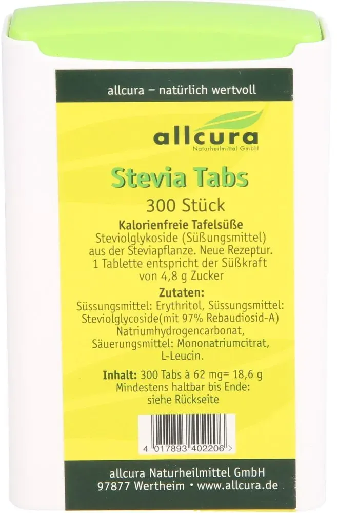 Verfügbarkeit: 1-2 Werktage - 0.02 € / 1 ct - Kategorie: Arzneimittel - Allcura - GTIN:4017893402206 - PZN:07796025 - 07796025: Allcura Naturheilmittel GmbH - STEVIA TABS 300 St - 4,82 Euro bei UnserekleineApotheke - gefunden von billiger.de Diese Vollmilchschokolade mit Stevia ist eine gute Option für alle, die Süßes genießen möchten, aber Zucker meiden. Liki24.de Vollmilchschokolade mit Stevia-Süßstoff, 100 g, Torras