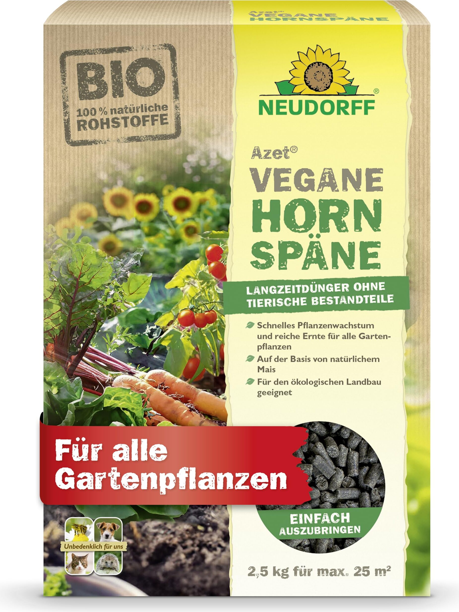 Kategorie: Pflanzendünger - BLUMIXX - GTIN:4250336559468 - Natürlicher Stickstoffdünger – Blumixx Hornspäne versorgen Pflanzen mit 14 % Stickstoff und fördern kräftiges Wachstum. Perfekt als Rosendünger, Pflanzendünger und Universaldünger für gesunde Pflanzen in Garten und Beeten. Langzeitwirkung & Bodenaktivator – Die Hornspäne werden langsam zersetzt und sorgen für eine kontinuierliche Nährstoffversorgung. Sie verbessern die Pflanzerde, fördern das Bodenleben und tragen zur Humusbildung bei. Schonender Volldünger – Keine Verbrennungsgefahr, da die Hornspäne natürlich zersetzt werden. Ideal für empfindliche Pflanzen, Rasen und als Rosendünger. Für umweltbewusstes Gärtnern ohne Chemie. Vielseitig anwendbar – Ob als Universaldünger für Zierpflanzen, unter Hackschnitzel oder in Beeten und Hochbeeten – dieser Dünger ist perfekt für gesunde Pflanzen und lockeren, fruchtbaren Boden. Frühe Düngung ab März – Starten Sie die Gartensaison mit Blumixx Hornspänen! Der natürliche Stickstoffdünger kann bereits im Frühjahr ausgebracht werden, um Pflanzen optimal mit Nährstoffen zu versorgen. - 12,99 Euro bei Amazon Marketplace Automotive - gefunden von billiger.de Neudorff Azet Vegane Hornspäne sind ein 100% natürlicher Stickstoff-Dünger, der umweltbewusste Gärtner anspricht. ![]() kaufland.d e Neudorff Neudorff - Azet Vegane Hornspäne 2,5 kg - 100% natürlicher Stickstoff-Dünger