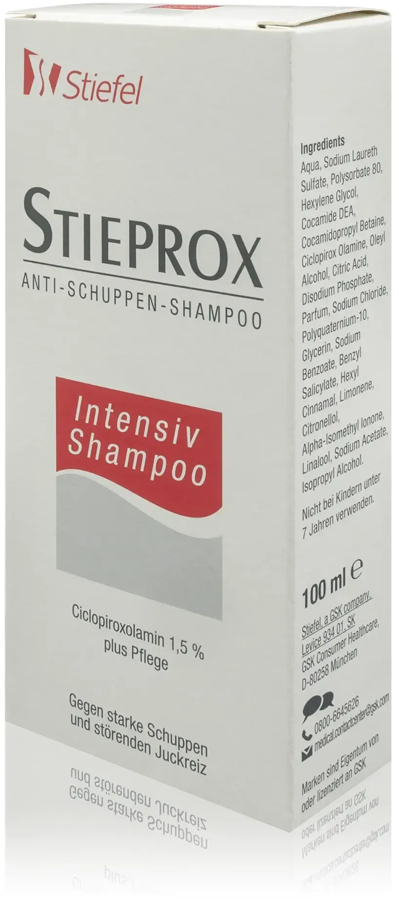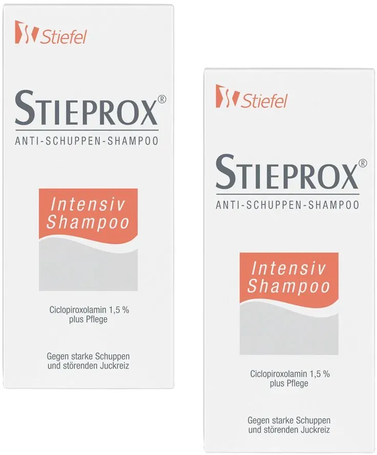 STIEFEL - EAN: 4026600681858 - Stieprox Intensiv Shampoo, Ciclopiroxolamin 1,5 % plus Pflege, 100 ml, gegen starke Schuppen und störenden Juckreiz Der Anti-Schuppen-Wirkstoff Ciclopiroxolamin dient der Intensiv-Pflege der Kopfhaut bei starken Schuppen und störendem Juckreiz.... - bei shop-apotheke.com - aus Yadore Produktdaten Dieses Doppelpack ist ideal für Nutzer, die einen Vorrat anlegen möchten und bietet ein gutes Preis-Leistungs-Verhältnis pro Einheit. ![]() ![]() Stiefel Stieprox Intensiv Shampoo 2x100 ml