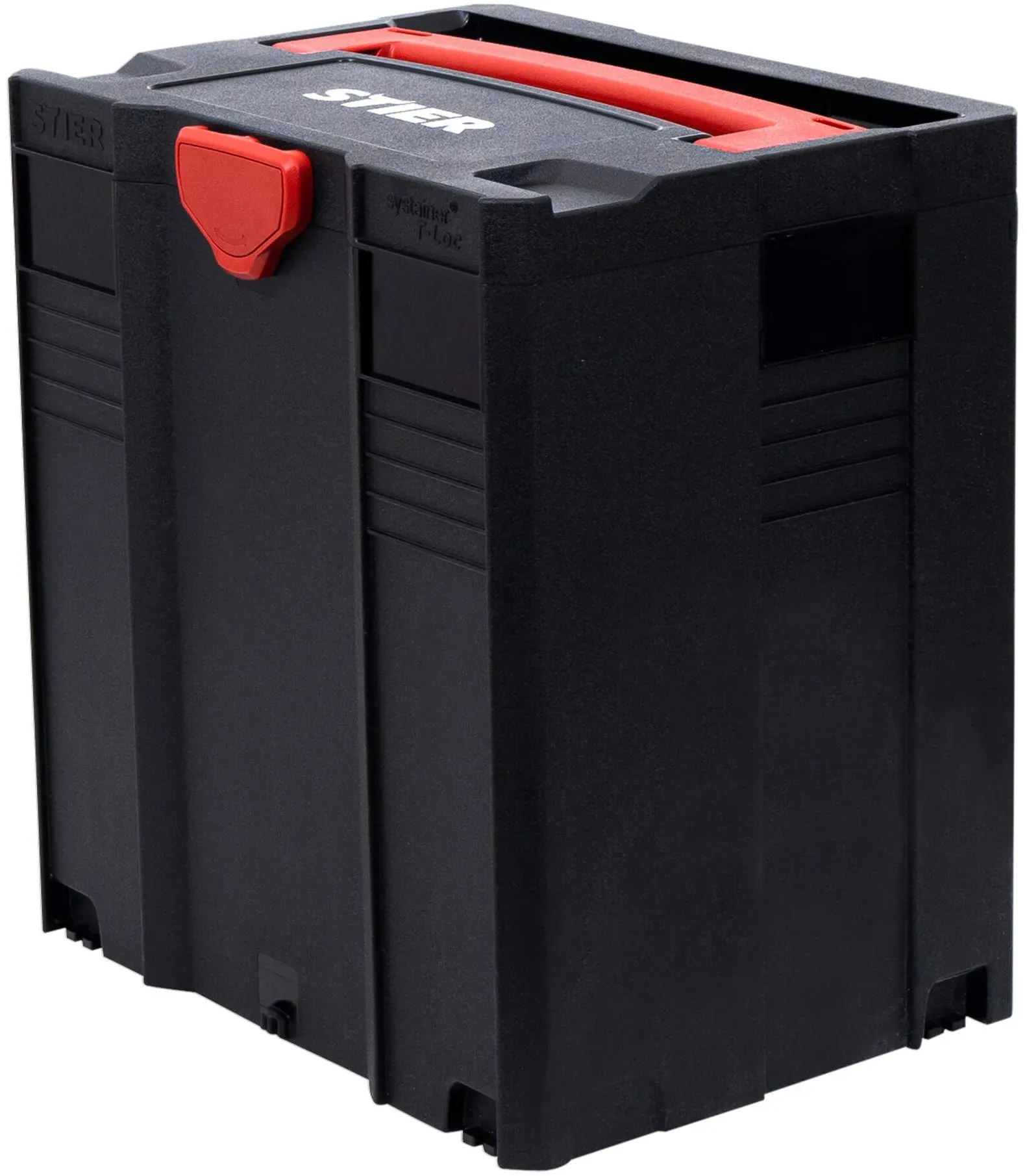 Kategorie: Werkzeugkoffer - Stier - GTIN:4260439000767 - QUALITäT: Die STIER Toolbox besticht durch Ihre hochwertige Verarbeitung bei schlichtem Design. Die genieteten Scharniere sowie das hochwertige 0,6 mm Stahlblech ermöglichen einen komfortabelen und sicheren Transport von Werkzeug. ORDNUNG: Organisation und Ordnung sind das A&O für jeden Handwerker. Häufig verwendetes Werkzeug muss jederzeit und ohne lange zu suchen griffbereit sein. Hierfür sorgen 5 geräumige Fächer SICHERHEIT: Der Werkzeug-Koffer schließt automatisch, wenn der umklappbare Tragbügel hochgezogen wird und verhindert damit ungewolltes öffnen. OPTIK: Die Vorzüge der STIER-Toolbox spiegeln sich auch in ihrem schlichten und ansprechenden Design wieder. STIER Produkte werden von Profis aus Handwerk und Industrie entwickelt und verbinden in höchstem Maße Leistungsstärke und Ergonomie. Kraftvoll. Widerstandsfähig. Langlebig. Tausende Kunden vertrauen dem besten Preis-Leistungs-Verhältnis. - 43,91 Euro bei Amazon Marketplace Home - gefunden von billiger.de Dieser Systainer ist eine vielseitige und stapelbare Transportbox aus robustem ABS-Kunststoff, ideal für den professionellen Einsatz. ![]() ![]() STIER Systainer V T-LOC BLACK-Edition, Werkzeugkoffer, 296 x 396 x 427 mm, BLACK-Edition, Transportbox aus stabilem ABS-Kunststoff, Systemkoffer stapelbar, Sortierbox