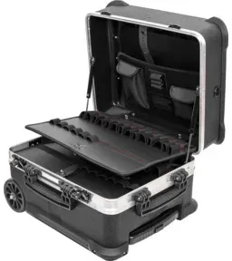 Kategorie: Werkzeugkoffer - Stier - GTIN:4251709619147 - Das STIER Universal-Werkzeugsortiment im Aluminiumkoffer bietet seinem Anwender stets das richtige Werkzeug an Eigenschaften: Perfekte Universal-Lösung für nahezu alle Anwendungsbereiche dank extra großer Auswahl an Werkzeugen Alle Teile sind auch während des Transports durch die hochwertige Weichschaumeinlage im 4. Fach sowie elastischen Gurten und Klettverschlüssen in den übrigen Fächern stets sicher an ihrem Platz verstaut Markierungen und Umrisse in den einzelnen Fächern helfen dabei, schnell den richtigen Platz für jedes Teil zu finden Standfüße an Unter- und Rückseite sowie verstärkte Ecken am Koffer verhindern Beschädigungen am Gehäuse Neben anderem hochwertigen Werkzeug enthält der Koffer die beliebten originalen STIER Zangen (Made in Germany), STIER Maulschlüssel sowie die STIER Umschaltknarre in zwei verschiedenen Größen Lieferumfang: 1. Fach STIER Seitenschneider 160 mm MADE IN GERMANY STIER Telefonzange / Spitzzange gerade 205 mm MADE IN GERMANY STIER Cuttermesser STIER Kraft-Kombinationszange 180 mm MADE IN GERMANY STIER Wasserpumpenzange tauchisoliert 240 mm MADE IN GERMANY STIER Kneifzange STIER Kombischere STIER Sicherungsringzange mit 4 Aufsätzen 2. Fach STIER Schlosserhammer Robust mit Stielschutz DIN 1041 STIER Taschenlampe STIER Teleskopmagnet 135-600 mm STIER Rollgabelschlüssel STIER Multifunktions-Säge STIER Winkelschraubendreher-Satz Sechskant 3. Fach 3 x STIER Schlitz-Schraubendreher - Gr. 3,5 ... Dieser Premium Werkzeugtrolley mit TSA-Schlössern ist die ideale Wahl für den sicheren und komfortablen Transport von wertvollem Werkzeug, auch auf Reisen. ![]() ![]() STIER Werkzeugtrolley Premium mit TSA-Schlössern, leer