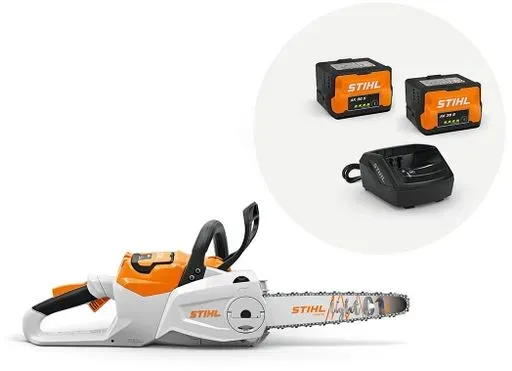 Kategorie: Kettensägen - Stihl - GTIN:0886661684083 - STIHL MSA 80 C set mit 2x AK 30 S + AL 101 ladegerätDie leistungsstarke, vielseitig einsetzbare und einfach zu bedienende Akku-Kettensäge STIHL MSA 80 C-B ist gut geeignet, wenn Sie privat in Ihrem Garten oder auf Ihrem Grundstück äste oder Sträucher präzise schneiden oder kleinere Bäume fällen wollen. Ebenso können Sie mit ihr handwerkliche Arbeiten, wie beispielsweise die Holzbearbeitung oder das Schneiden von Bauholz, schnell und effektiv erledigen.Die STIHL MSA 80 C-B arbeitet mit Akkus aus dem STIHL AK-System und ist dabei so leise, dass Sie die Säge ohne Gehörschutz und in lärmsensiblen Bereichen nutzen können. Wenn Sie direkt mit dem Arbeiten starten möchten, aber noch keinen Akku aus dem STIHL AK-System besitzen, dann lohnt es sich, die Akku-Motorsäge STIHL MSA 80 C-B im Set mit einem Akku STIHL AK 30 S und dem Standardladegerät STIHL AL 101 zu erwerben.Dank der serienmäßig mitgelieferten 30-cm-Schneidgarnitur mit der 1/4' P Picco Micro 3 (PM3) Sägekette und der Führungsschiene STIHL Light 01 können Sie saubere und glatte Schnitte verlässlich ausführen. Das geringe Systemgewicht und der leistungsstarke, energieeffiziente EC-Motor sorgen für eine optimale Balance und die nötige Kraft.über den Bedienhebel mit Poti-Funktion können Sie bei Ihrer Akku-Motorsäge stufenlos die Drehzahl regeln. Ein gummierter Softgrip-Griff bietet Ihnen einen guten Halt, hohen Arbeitskomfort und erhöht die Ergonomie. Für ein einfaches ... Der Stihl Akku-Rasenmäher RMA 448 V mit AK 30 S und AL 101 bietet eine variable Geschwindigkeitsregelung für komfortables Mähen. ![]() ![]() Stihl Akku-Rasenmäher RMA 448 V mit AK 30 S und AL 101