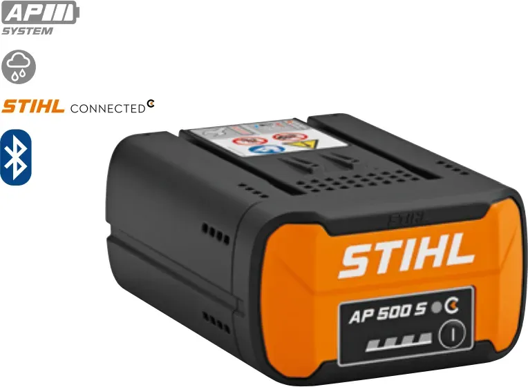 false - Stihl Connected Smart Products Elektrogartenwerkzeug - EAN:0886661754502 - Das STIHL AP€‘System (https://www.stihl.de/de/technologie/akku-technologie/ap-system) unterstützt Sie bei Ihren täglichen Aufgaben in der Garten-, Landschafts- und Baumpflege. Die passenden Lithium-Ionen-Akkus AP helfen Ihnen dabei, dass Sie auch für anspruchsvolle Arbeiten STIHL Akku-Geräte einsetzen können. Durch vier LED€‘Leuchten sind Sie dabei stets über den Ladezustand des Akkus informiert. Dank neuer Power Laminat Technologie bietet Ihnen der Akku STIHL AP 500 S die doppelte Anzahl an möglichen Ladezyklen im Vergleich zu den bisherigen STIHL Akkus. Auch die Leistungsabgabe konnte nochmals im Vergleich zum AP 300 S von STIHL gesteigert werden. Zudem kann der Akku STIHL AP 500 S in das Flottenmanagementsystem STIHL connected (https://www.stihl.de/de/technologie/smart-products-technologien/connected) integriert werden. So haben Sie jederzeit Transparenz über die tatsächliche Betriebsdauer. Den STIHL AP 500 S mit einer Nennspannung von 36 V können Sie mit dem Akku-Schnellladegerät STIHL AL 501 (https://www.stihl.de/de/p/lademanagement-schnellladegeraet-al-501-188456) oder den Akku-Ladegeräten STIHL AL 301 (https://www.stihl.de/de/p/lademanagement-schnellladegeraet-al-301-135029#schnellladegeraet-al-301-1 35029) und STIHL AL 101 (https://www.stihl.de/de/ap/standardladegeraet-al-101-73243) wieder aufladen. In unserer Übersicht zu den Akku-Lauf- und Ladezeiten ... Ein leistungsstarker Stihl Akku mit hoher Kapazität für längere Betriebszeiten. ![]() ![]() STIHL Akku AP 500 S, 36V, 337Wh EA014006500