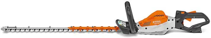 Kategorie: Heckenscheren - Stihl - GTIN:0795711311575 - Technische Daten Schnittlänge 75 cm Nennspannung 36 V Gewicht 1) 4,4 kg Gewicht 1) 4,4 kg Vibrationswert links/rechts 2) 3,3/2,8 m/s Gesamtlänge 132 cm Zahnabstand 38 mm Hubzahl ( Stufe 1/Stufe 2/Stufe 3) 2.800/3.000/3.200 1/min Akku-Technologie Lithium-Ion PRO Empfohlener Akku AP 300 Akku-Laufzeit mit AP 100 (Stufe 1/Stufe 2/Stufe 3) 3) 45/40/35 min Akku-Laufzeit mit AP 200 (Stufe 1/Stufe 2/Stufe 3) 3) 90/80/70 min Akku-Laufzeit mit AR 2000 3) bis 450 min Akku-Laufzeit mit AP 300 (Stufe 1/Stufe 2/Stufe 3) 3) 135/120/105 min Akku-Laufzeit mit AR 1000 (Stufe 1/Stufe 2/Stufe 3 3) 380/350/320 min Akkulaufzeit mit AR 1000 3) bis 320 min Akku-Laufzeit mit AR 2000 (Stufe 1/Stufe 2/Stufe 3 3) 550/500/450 min Akku-Laufzeit mit AR 3000 3) bis 570 min Akku-Laufzeit mit AR 3000 (Stufe 1/Stufe 2/Stufe 3 3) 700/630/570 min 1) Ohne Akku 2) K-Wert nach RL 2006/42/EG = 2 m/s 3) Laufzeiten sind Anhaltswerte und können je nach Anwendung variieren. Serienausstattung Doppelseitiges Schneidmesser STIHL Heckenscheren mit doppelseitigem Schneidmesser schneiden sowohl bei senkrechten wie waagrechten Schnitten perfekt ab. Durch den Einsatz beider Messerseiten ermöglichen sie auch einen optimalen Schnitt in Ecken. (Abb. ähnlich) STIHL EC-Motor Neben einer beeindruckenden Arbeitsleistung haben Profi -Heckenscheren im AkkuSystem PRO einen EC-Motor mit automatischer Drehrichtungsumkehr. Das ermöglicht bei Bedarf das Freifahren der ... Für größere Hecken ist dieses Grundgerät mit einer Schnittlänge von 75 cm eine effiziente Wahl. Passiontec .de