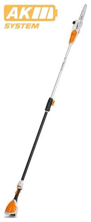 Stihl - EAN: 0886661405138 - STIHL Akku Hochentaster HTA 50 mit Akku AK 20 und Ladegerät AL 101 Mit dem HTA 50 komfortabel hochliegende äste schneidenDer STIHL Hochentaster für das Kombisystem schneidet präzise an hohen ästen. Kompakte Bauweise mit integrierter Peilleiste.Der Akku-Hochentaster STIHL HTA 50 eignet sich sehr gut zum Bäume pflegen. Der STIHL HTA 50 arbeitet mit Lithium-Ionen-Akkus aus dem STIHL AK-System. Sie können ihn in lärmsensiblen Bereichen einsetzen und benötigen keinen Gehörschutz. Mit dem ergonomisch optimierten Bediengriff haben Sie alle Bedienelemente des STIHL HTA 50 komfortabel in der Hand. Die kompakte Bedieneinheit können Sie als Rechts- oder Linkshänder nutzen. Der gesamte Griffbereich ist mit einem komfortablen Griffschlauch umhüllt, so dass Sie den Akku-Hochentaster fest in den Händen halten. Mit der STIHL 1/4'-PM3-Sägekette erzielen Sie eine hohe Schnittleistung. Aufgrund des geringen Gewichts und der seitlichen Kettenspannung, für ein leichtes Nachspannen der Kette, arbeiten Sie bequem, ergonomisch und kräftesparend. Der öltankdeckel am halbtransparenten öltank lässt sich für ein schnelles Nachfüllen einfach öffnen. Mit dem robusten Asthaken am kompakten Schneidkopf lässt sich loses Schnittgut greifen und entfernen. Der HTA 50 hat eine Gesamtlänge von 280 cm und dank des teilbaren Schaftes ist ein platzsparender Transport sowie eine einfache Lagerung möglich. Durch eine optionale Schaftverlängerung können Sie den Schaft auf 330 cm ... Dieses Angebot ist ein praktisches Set mit Akku AK 20 und Ladegerät AL 101, ideal für den sofortigen Start. ![]() STIHL HTA 50 mit Akku AK 20 und Ladegerät AL 101