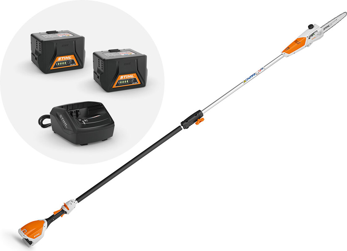 Verfügbarkeit: auf Lager - Kategorie: Kettensägen - Stihl - GTIN:0886661736751 - Der batteriebetriebene Stihl HTA 50 Astsäge eignet sich perfekt für den eigenen Garten, wenn Bäume beschnitten werden müssen, insbesondere wenn es um hoch sitzende äste geht, die abgeschnitten werden sollen. Auch beim Entfernen von beschädigten und abgestorbenen ästen ist die HTA 50 die optimale Maschine. Die Stihl HTA 50 arbeitet mit Lithium-Ionen-Batterien aus dem Stihl AK-System. Sie kann problemlos in geräuschempfindlichen Bereichen eingesetzt werden und benötigt nicht zwingend, obwohl es immer empfohlen wird, Gehörschutz zu tragen.Lieferung mit AK 20 Batterie und AL 101 Ladegerät sowie 25 cm Schneidausrüstung. 1„4€œ PM3 Sägekette Die hochwertige 1„4€˜€˜-PM3 Sägekette in Kombination mit dem Rollomatic E Mini Schwert sorgt für optimale Schneidleistung bei hoch sitzenden ästen. Teleskopschaft Der Schaft des HTA 50 lässt sich leicht mit der Flügelmutter an der Klemmkupplung teilen, was die Maschine sowohl einfach zu transportieren als auch zu lagern macht. Länge Der HTA 50 hat eine Gesamtlänge von 280 cm, ist aber aufgrund seiner teilbaren Konstruktion sowohl einfach zu transportieren als auch zu lagern. Als optionales Zubehör gibt es eine Schaftverlängerung, die die Gesamtlänge auf bis zu 330 cm verlängert. Ergonomische Bedienelemente Die ergonomischen Bedienelemente in Kombination mit einer selbstauslösenden Sicherheitssperre sind einfach zu bedienen ... Dieses Set beinhaltet einen 2,0 Ah Akku und Ladegerät, was einen guten Start für die meisten Anwendungen ermöglicht. ![]() ![]() Stihl HTA 50 25 cm inkl. 1 x 2,0 Ah und Ladegerät