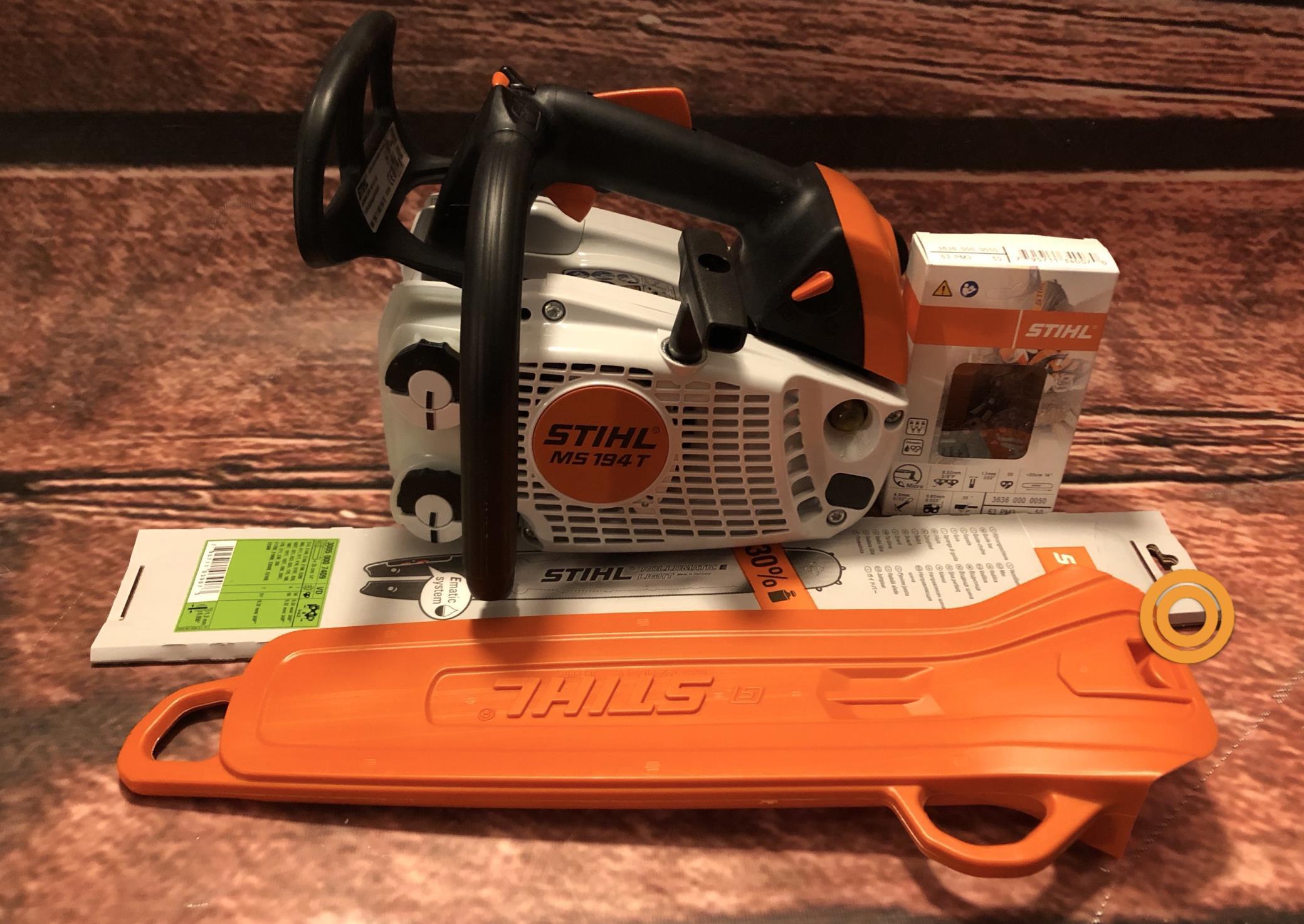 Kategorie: Kettensägen - Stihl - GTIN:0886661935123 - Vielseitige Baumpflegesäge von Stihl für Arbeiten im Baum ausschließlich durch den geschulten Anwender. Hervorragende Balance, manuelle Kraftstoffpumpe, seitliche Kettenspannung, ElastoStart, der transparente öltank, werkzeuglose Tankverschlüsse sowie die verliersichere Mutter am Kettenraddeckel sind die wichtigsten Details dieser Spezialsäge. Feiner Schnitt durch die 1/4“P-Schneidausrüstung mit 1,1 mm. Hubraum 31,8 cm3. Leistung 1,4/1,9 (kW/PS). Schalldruckpegel 100 dB(A), Schallleistungspegel 112 dB(A), Vibrationswert links/rechts (m/s2) 3,6/3,6. Gewicht unbetankt, ohne Schneidausrüstung 3,3 kg. Gewicht unbetankt, mit Schneidausrüstung. - 539,00 Euro bei GRUBE.DE - gefunden von billiger.de Dieses Angebot ist empfehlenswert, da es die Stihl MS 194 T als Einhandsäge mit 35 cm Schwert und zusätzlichen Ketten sowie Kettenschutz zu einem attraktiven Paketpreis von 549.99 Euro anbietet. ![]() ![]() STIHL R - MS194T Einhandsäge eBay 1.9PS 35cm schwert + ketten + Kettenschutz Leicht !