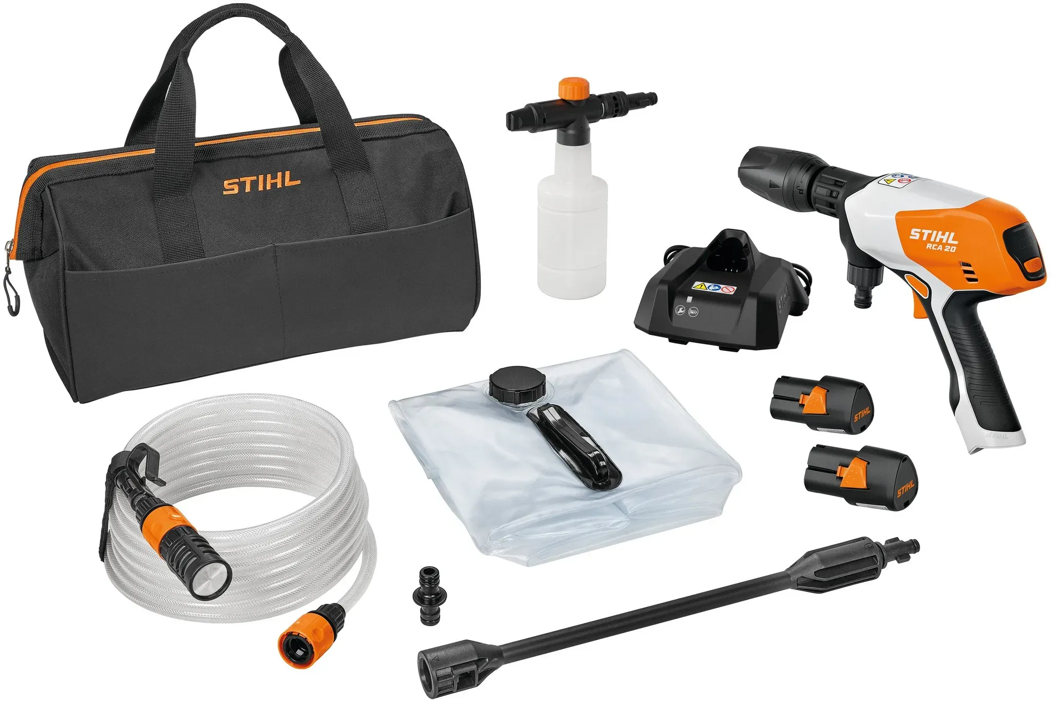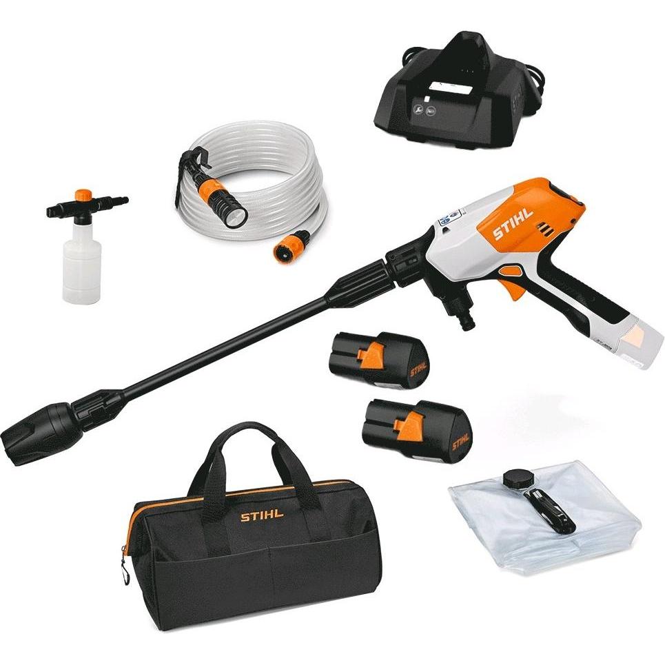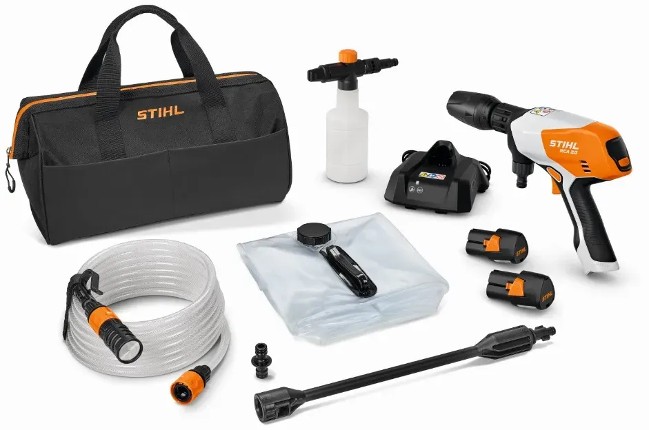 Zustand: Neu - Hochdruckreiniger - Stihl STIHL - RA020117610 - EAN: 0886661045761 - 4-in-1-Düse Strahlrohrverlängerung Saugschlauch mit Filter Wasser-Faltcontainer Reinigungsmittel Sprühset - 5 Händler im amazon.de Marketplace Direkt vom Hersteller Stihl, bietet dieses Set eine zuverlässige Option mit Akkus und Ladegerät. ![]() Stihl RCA 20 mit 2x Akku AS 2 und Ladegerät AL 1