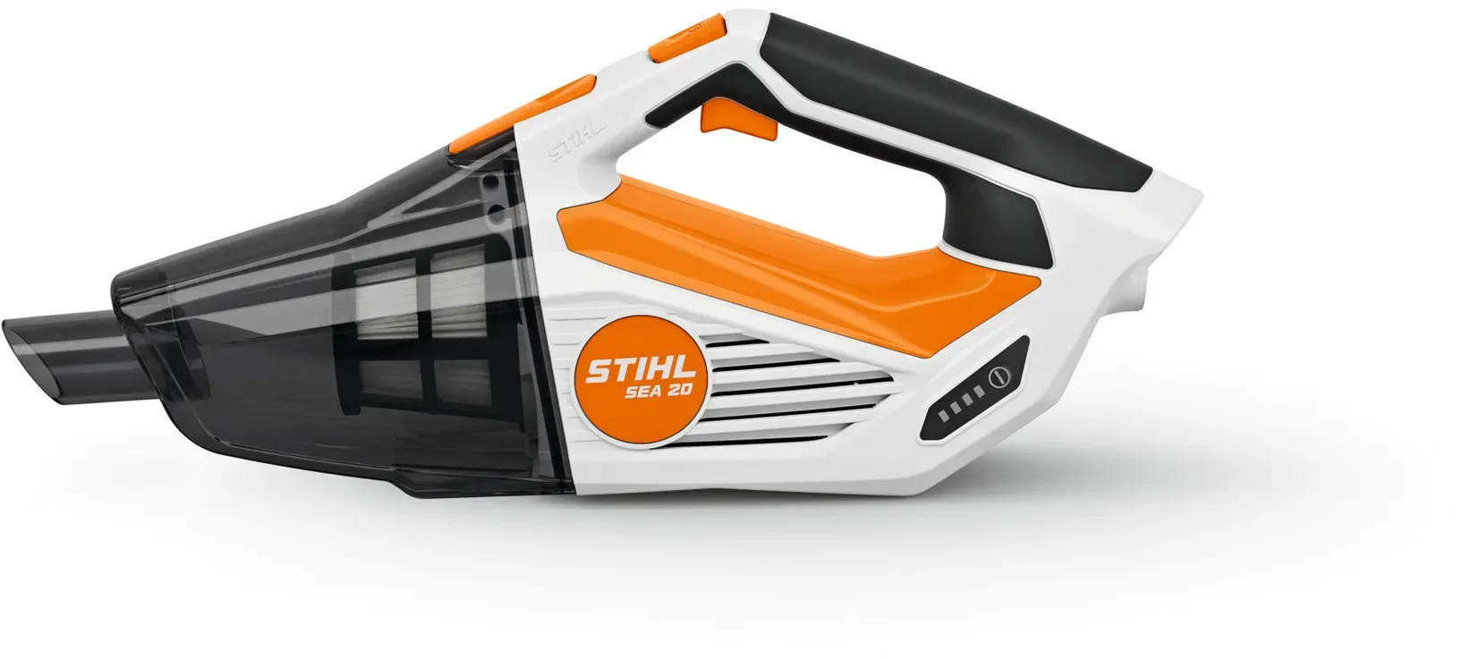Kategorie: Staubsauger - Stihl - GTIN:0886661967971 - Der STIHL Mini-Akkusauger SEA 20: Kleiner Sauger, große Wirkung (Grundgerät ohne Akku & Ladegerät!) Für zu Hause oder in der Hobbywerkstatt: Der neue Akku-Handsauger STIHL SEA 20 mach Staub und Schmutz den Garaus. Der handliche Sauger ist einer der leistungsstärksten seiner Klasse und säubert so kabellos kleine Flächen. Durch die umfangreiche Serienausstattung und das gute Preis-Leistungs-Verhältnis überzeugt der Neuzugang im AS-System. Das geringe Gewicht von nur 1,1 kg (ohne Akku und Düsen) macht den kleinen Helfer zu einem absoluten \'Lieblingsgerät\'. Das zweistufige Filtersystem kann einfach gereinigt werden und ist wieder verwendbar. Das umfangreiche Zubehör kann sich sehen lassen. Die Fugendüse ist 300 mm lang und ist somit auch für schwer zugängliche Stellen der Ideale Helfer. Der bis zu 1,5 Meter ausziehbare Schlauch ist flexibel. Das Verlängerungsrohr und die Universaldüse mit abnehmbarem Borstenaufsatz runden das Paket ab. Alles kommt sauber verstaut in einer Aufbewahrungstasche daher. Technische Daten Akku-Technologie: Lithium-Ionen Motorprinzip: DC-Motor Gewicht ohne Akku und Zubehör: 1,1 kg Max. Unterdruck: 80/8 mbar/kPa Max. Volumenstrom: 1020 l/min Schalleistungspegel: 84 dB(A)1 Vibrationswert: 1,5 m/s22 Behältervolumen: 0,75 l Laufzeit mit AS 2: 14 min 1K-Faktor nach RL 2006/42/EG = 3 dB(A) 2K-Faktor nach RL 2006/42/EG = 1,5 m/s2 - 98,99 Euro bei simon-profi-technik.de - gefunden von billiger.de Ein solides Angebot für das Einzelgerät des Stihl SEA 20, direkt vom Hersteller. ![]() Stihl.de