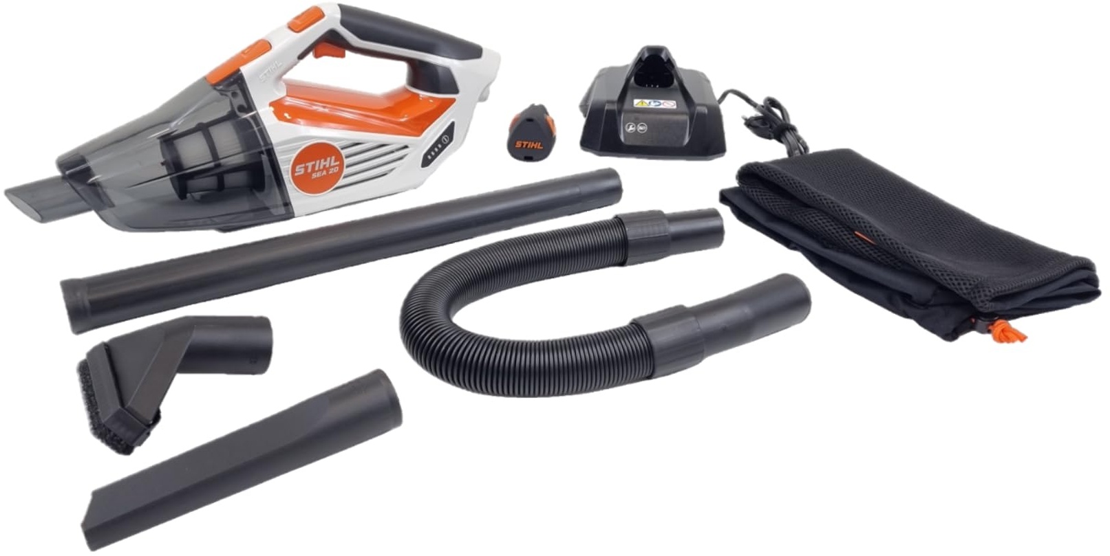 Kategorie: Staubsauger - Stihl - GTIN:0886661968039 - Der STIHL Mini-Akkusauger SEA 20: Kleiner Sauger, große Wirkung SET mit AS 2 und AL 1 Für zu Hause oder in der Hobbywerkstatt: Der neue Akku-Handsauger STIHL SEA 20 mach Staub und Schmutz den Garaus. Der handliche Sauger ist einer der leistungsstärksten seiner Klasse und säubert so kabellos kleine Flächen. Durch die umfangreiche Serienausstattung und das gute Preis-Leistungs-Verhältnis überzeugt der Neuzugang im AS-System. Das geringe Gewicht von nur 1,1 kg (ohne Akku und Düsen) macht den kleinen Helfer zu einem absoluten \'Lieblingsgerät\'. Das zweistufige Filtersystem kann einfach gereinigt werden und ist wieder verwendbar. Das umfangreiche Zubehör kann sich sehen lassen. Die Fugendüse ist 300 mm lang und ist somit auch für schwer zugängliche Stellen der Ideale Helfer. Der bis zu 1,5 Meter ausziehbare Schlauch ist flexibel. Das Verlängerungsrohr und die Universaldüse mit abnehmbarem Borstenaufsatz runden das Paket ab. Alles kommt sauber verstaut in einer Aufbewahrungstasche daher. Technische Daten Akku-Technologie: Lithium-Ionen Motorprinzip: DC-Motor Gewicht ohne Akku und Zubehör: 1,1 kg Max. Unterdruck: 80/8 mbar/kPa Max. Volumenstrom: 1020 l/min Schalleistungspegel: 84 dB(A)1 Vibrationswert: 1,5 m/s22 Behältervolumen: 0,75 l Laufzeit mit AS 2: 14 min 1K-Faktor nach RL 2006/42/EG = 3 dB(A) 2K-Faktor nach RL 2006/42/EG = 1,5 m/s2 - 127,48 Euro bei simon-profi-technik.de - gefunden von billiger.de Dieses Angebot von Holztechnik Markmüller ist ein gutes Komplettpaket für den sofortigen Start. ![]() ![]() STIHL SEA 20, mit Akku AS 2 und Ladegerät AL 1