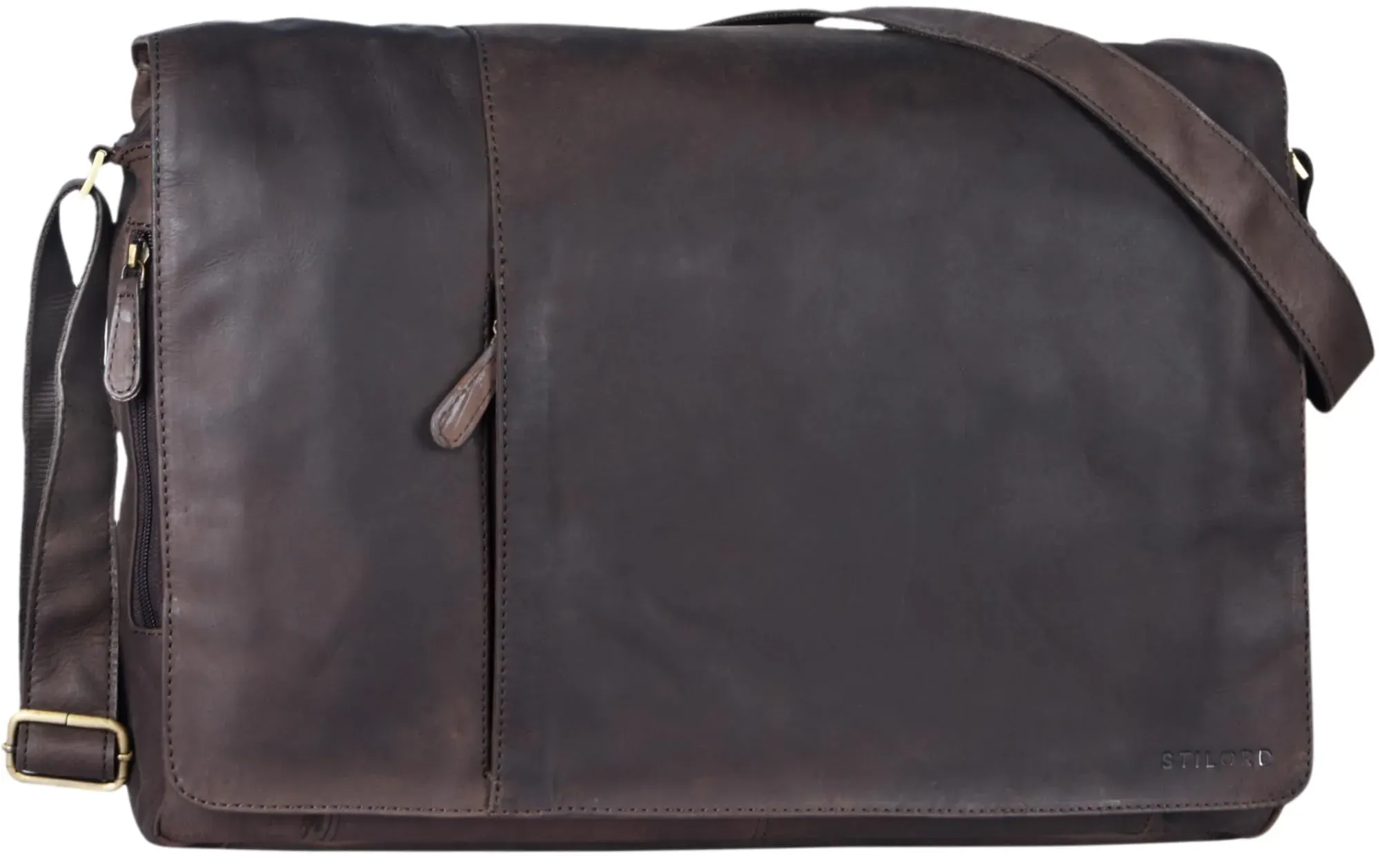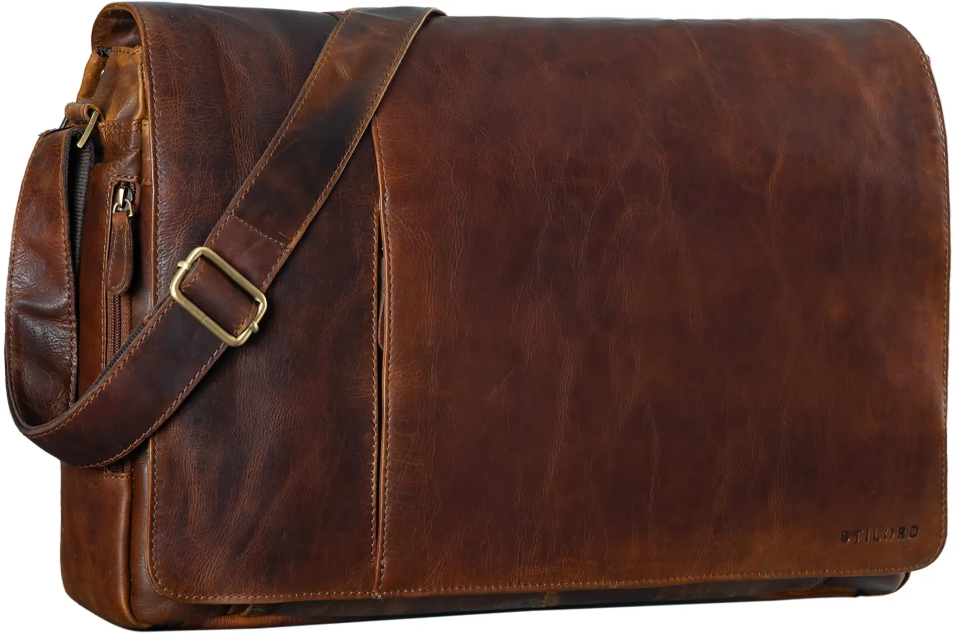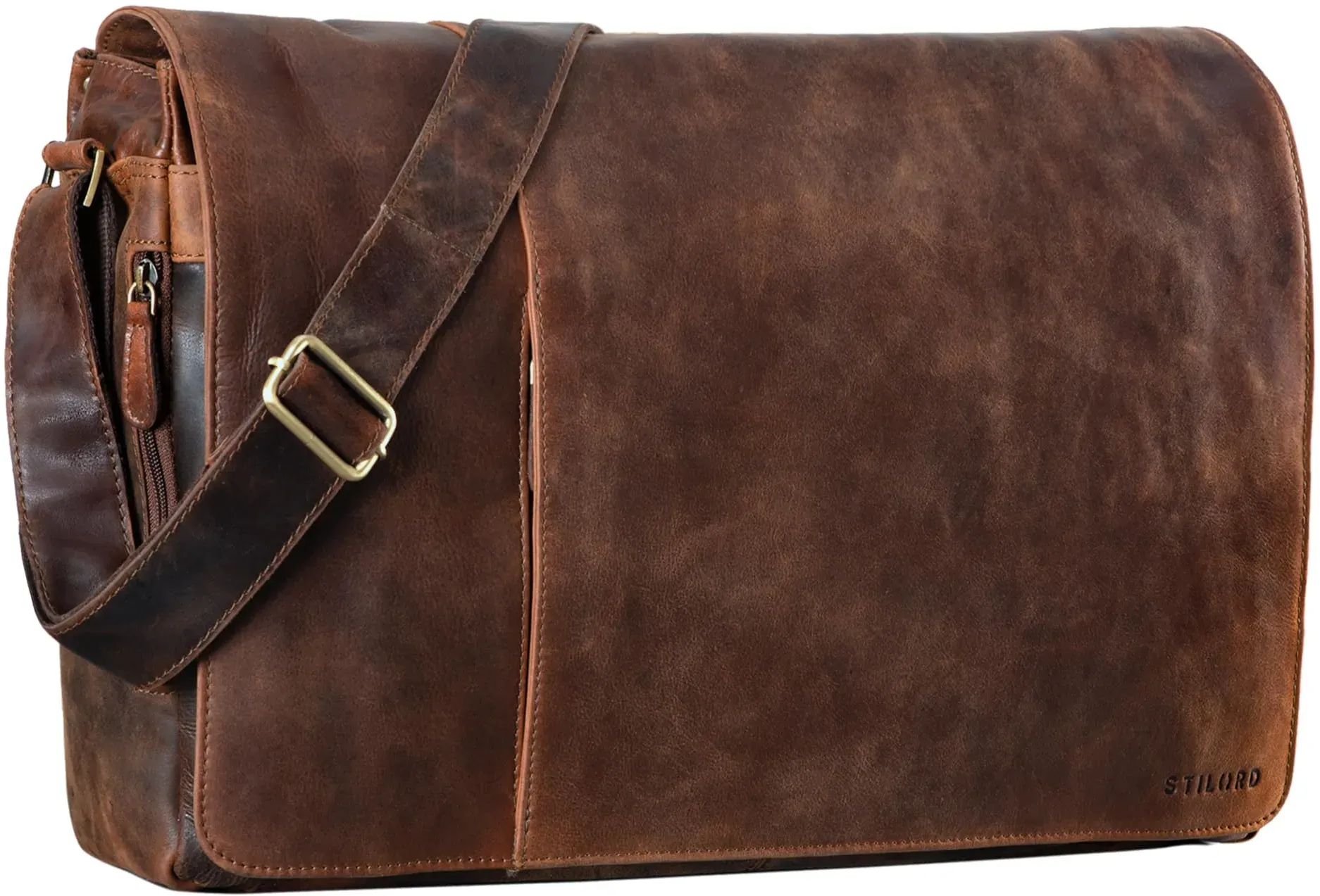 Auf Lager Versand durch AmazonSTILORD 'Maximus' XXL Ledertasche riesige Herren Umhängetasche Unitasche 17 18 19 21 Zoll Laptop Aktentasche Bürotasche Büffel Leder, Farbe:calais - braun