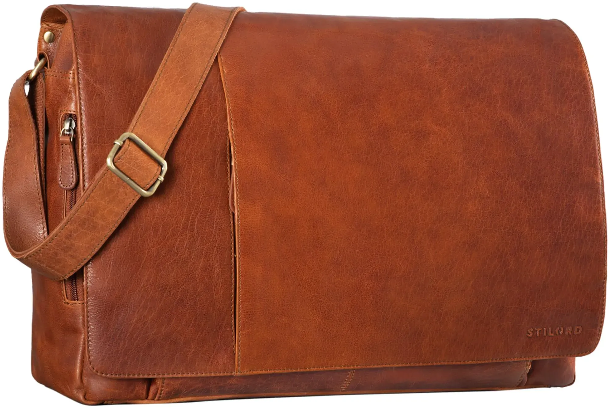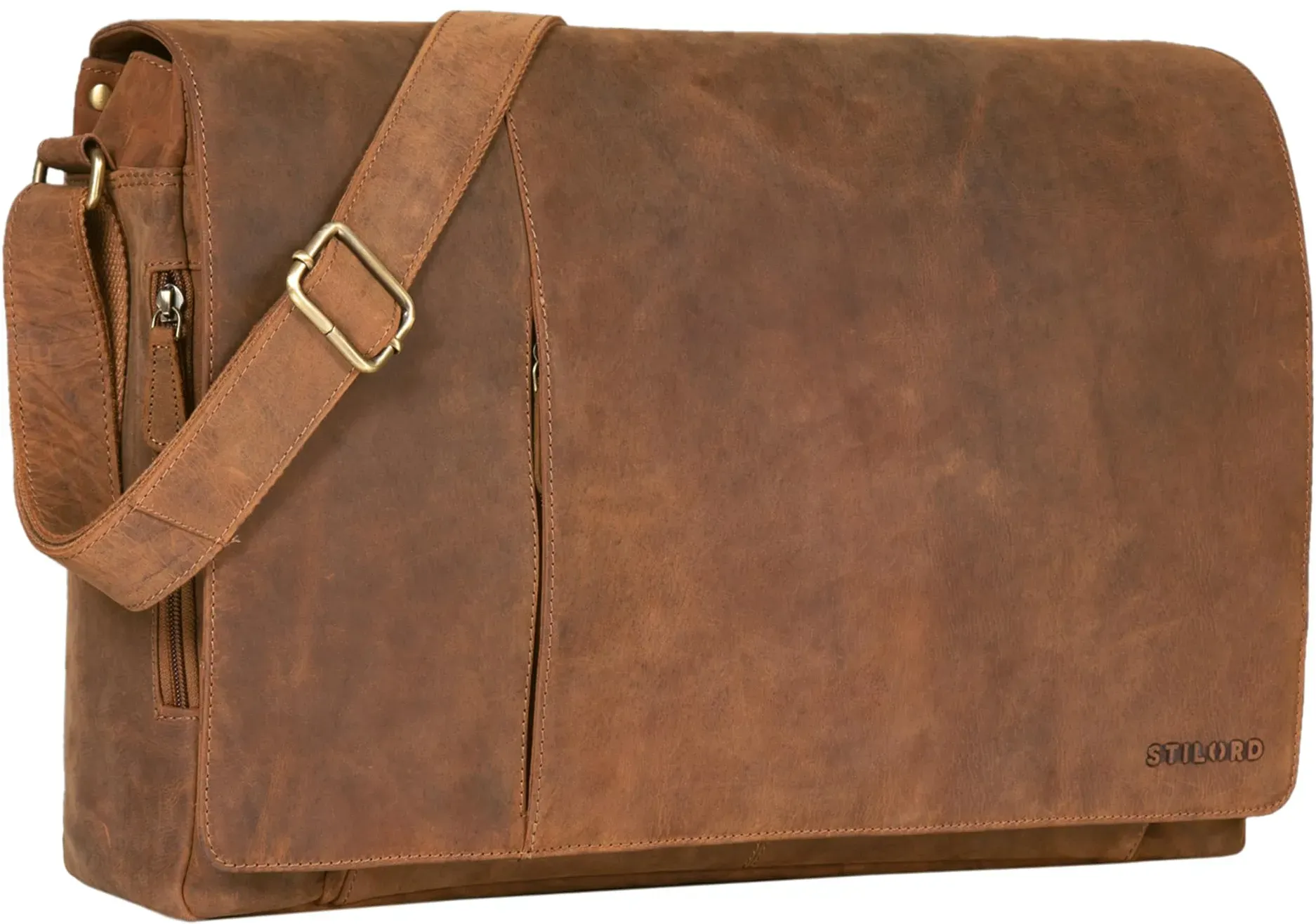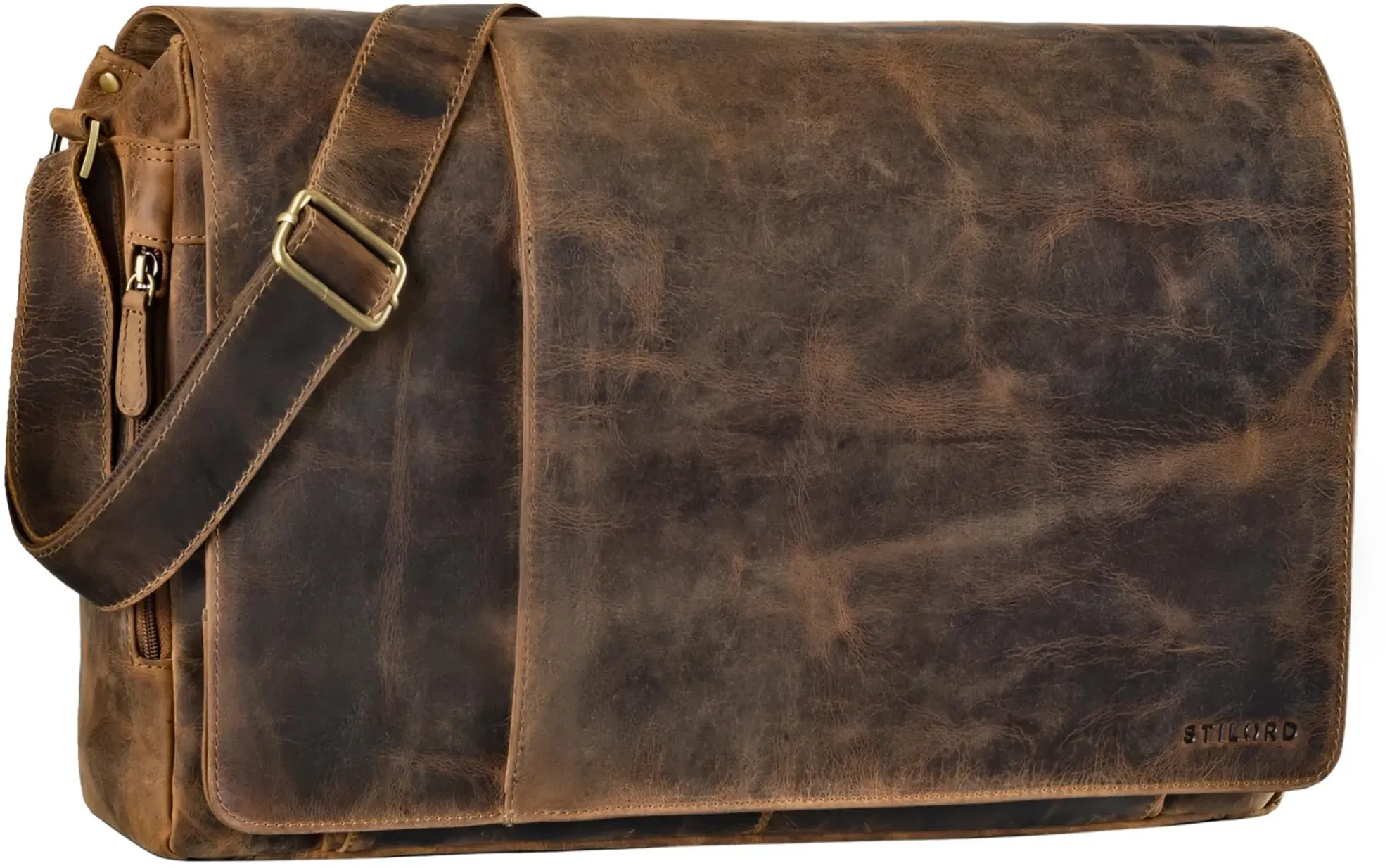 Auf Lager Versand durch AmazonSTILORD 'Maximus' XXL Ledertasche riesige Herren Umhängetasche Unitasche 17 18 19 21 Zoll Laptop Aktentasche Bürotasche Büffel Leder, Farbe:calais - braun