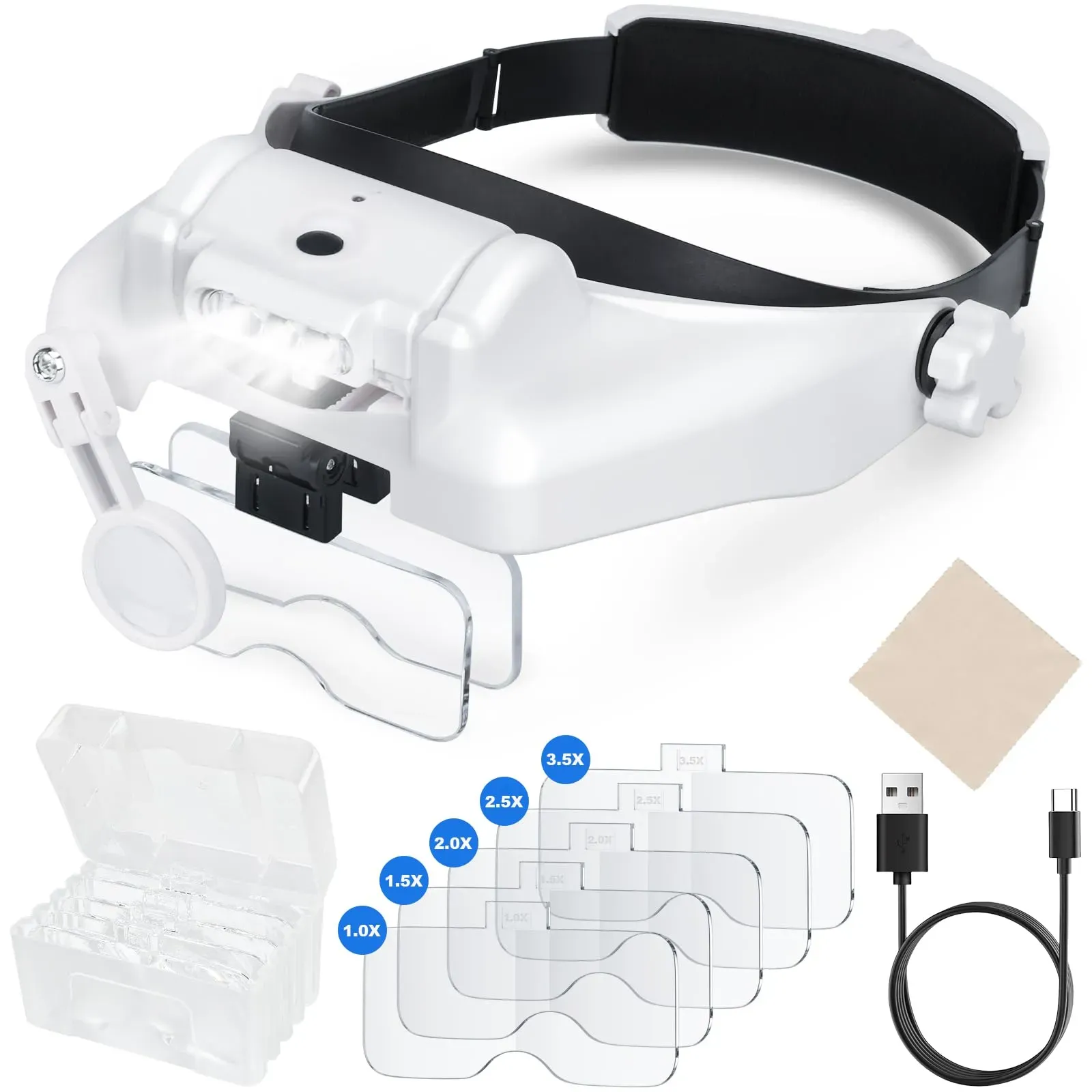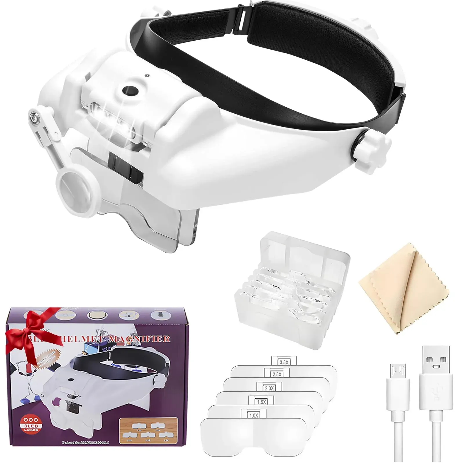 Verfügbarkeit: Auf Lager - Kategorie: Lupen - drepint - Multi-Vergrößerungslinse: Lupenbrille mit Licht mit 5 austauschbaren Linsen (1x, 1,5x, 2x, 2,5x, 3,5x) und einer kleinen 8x-Rundlinsen-Zusatzlinse. Diese Linsen sind aus hochwertigem Acryl gefertigt, bruchsicher und langlebig, leicht und bieten eine hohe Bildschärfe. Die 6 Linsen lassen sich zu insgesamt 31 Vergrößerungskombinationen zusammenstellen, die maximale Vergrößerung beträgt 14-fach. Sie können entweder eine oder zwei Linsen mit unterschiedlicher Vergrößerung zugleich an diesem Mikroskop nutzen oder die integrierte 8X-Hilfslinse verwenden €“ je nach Bedarf für eine optimale Sicht. Bequemer und verstellbarer Winkel: Die Vergrößerungsbrille verfügt über drei verstellbare Schnallen. Die Schnallen auf der linken und rechten Seite helfen Ihnen dabei, die Linsen schnell in die gewünschte Position zu bringen und zu fixieren. Wenn Sie die Linsen nicht benötigen, können alle Linsen umgedreht oder nach oben gedreht werden. Die hintere Schnalle dient zur Einstellung der Kopfgröße und ist für einen Umfang von ca. 52€“66 cm geeignet, was für die meisten Kopfgrößen ausreicht. Das Kopfband ist mit weichem Schaumstoff gepolstert und sorgt auch bei längerem Tragen für hohen Tragekomfort. 2 Einstellbarer Helligkeit: Die Lupenbrille für Brillenträger verfügt über drei LED-Leuchten und eine 2-stufige Helligkeitseinstellung, sodass Sie auch bei schlechten Lichtverhältnissen eine optimale Sicht ... Die ZJchao Lupenbrille für 24.07 Euro bietet eine sehr hohe Vergrößerung bis zu 25X mit 4 Wechselobjektiven und verstellbarem LED-Licht. ![]() ![]() ZJchao Lupenbrille mit Licht, Hände Frei KopfbandLupe mit 4 Wechselobjektive, Lupenbrille Kopfbandlupe 10X, 15X, 20X, 25X Facher Vergrößerung, Verstellbarem LED Licht Kopflupe Stirnlupe