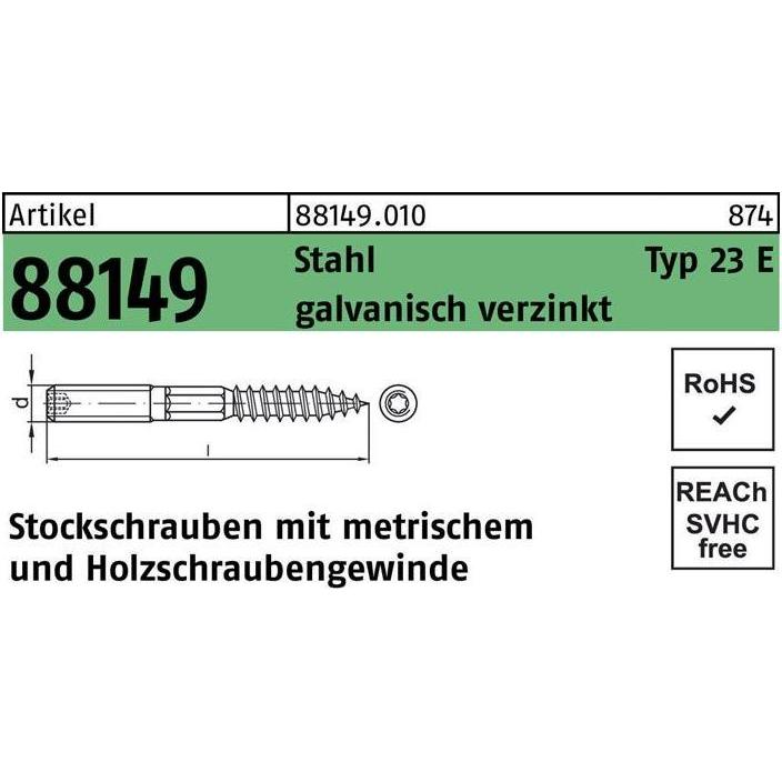 Befestigungstechnik Schmiedestücke & Hardware - EAN:4043952671535 - Artikel 88149 Stahl Typ 23 E galvanisch verzinkt Stockschrauben mit metrischem und Holzschraubengewinde - Abmessung: M 12 x 200 VE=S (50 Stück) (881490100120200) - gefunden von Kelkoo Contorion. de Stockschraube Edelstahl A2 M10x200 HP ; E-NORMpro (Stocks 10x200A2)