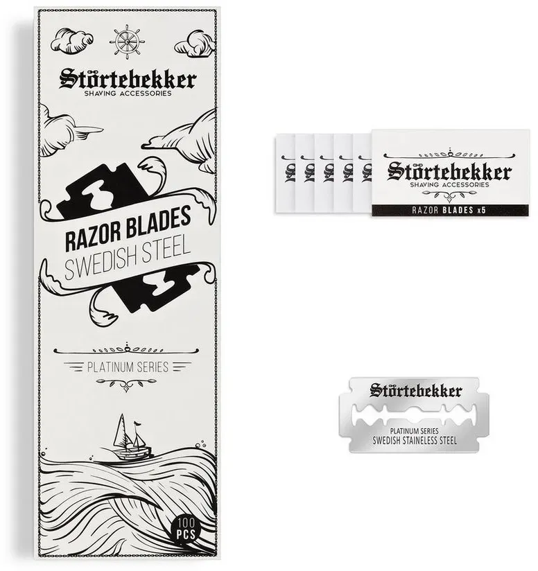 0.25 /1Stk - Kategorie: Rasierklingen - Störtebekker Shaving Accessories - GTIN:4260554490177 - Produktdetails Anzahl Klingen , 100 St., Passend für , Rasierhobel Rasiermesser, - 24,99 Euro bei OTTO - gefunden von billiger.de ![]() ![]() Störtebekker Shaving Accessories Störtebekker Premium Rasierklingen - 100 scharfe Rasierklingen für alle gängigen Rasierhobel & Rasiermesser - aus schwedischem Edelstahl - für empfindliche Haut - inkl. hochwertiger Verpackung