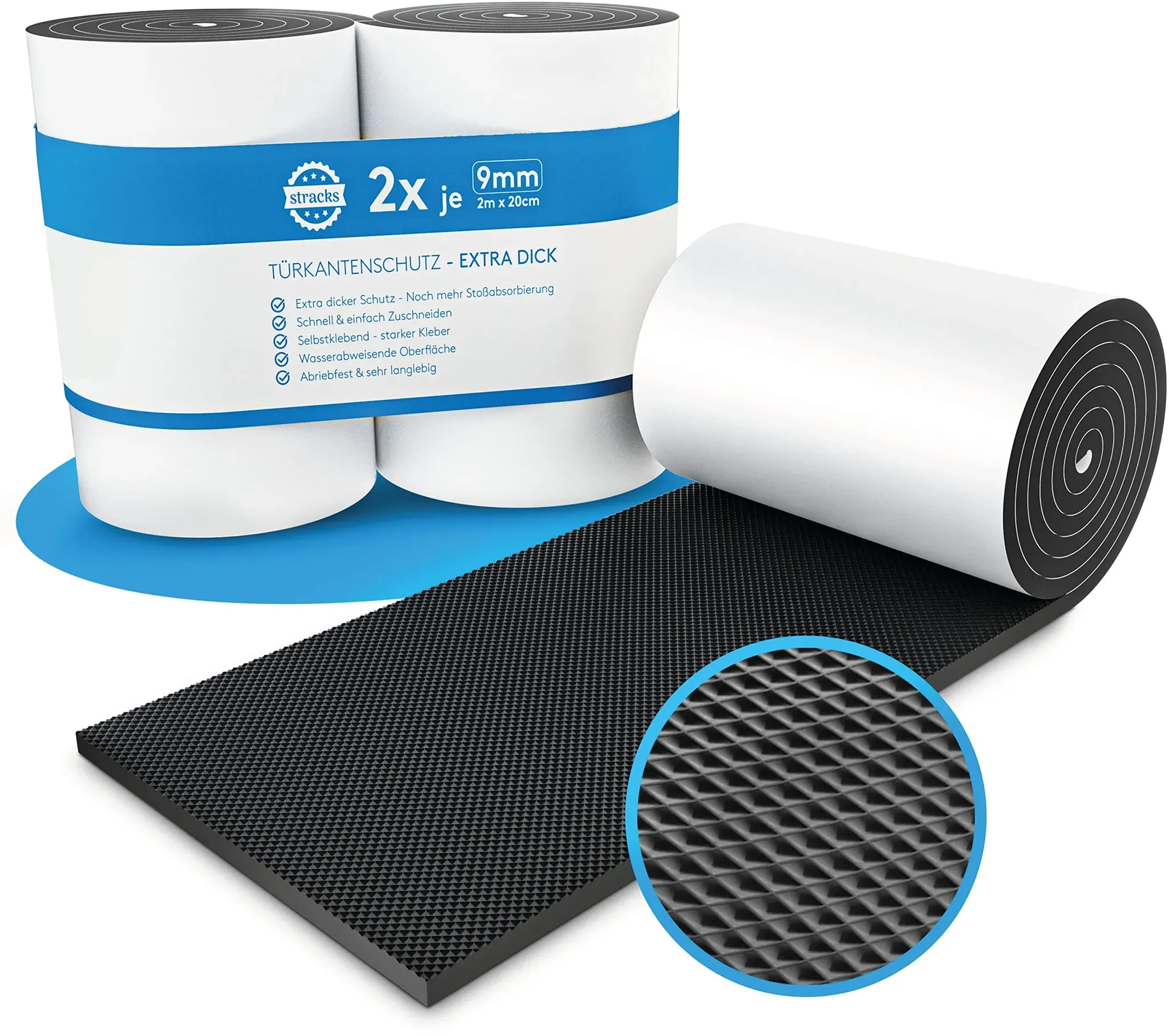 Auf Lager Versand durch AmazonSTRACKS® 2X Garagen Wandschutz je 2m x 20cm ? 9mm Extra Dicker Türschutz ? Für Ihr Auto und die Garagenwand ? Selbstklebender Türkantenschutz ? 2 Rollen - schwarz