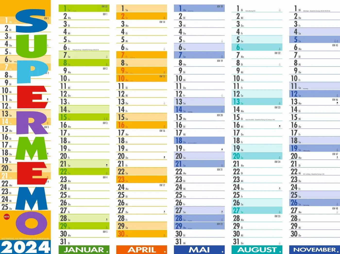 Kalender Gesamtsortiment Büro + Schreibwaren Schulbedarf Zubehör Schulbedarf Agenda Bücher & Zeitschriften - EAN:9783756405671 - Monat für Monat alles im Blick: Der neue Supermemo Terminplaner 2025 ist da! Der praktische Streifenkalender mit dem Fokus auf das Wesentliche: Mit Farbmarkierungen für Wochenenden und Feiertage und Datumsschieber für mehr Orientierung. Einspaltiger Langplaner für Homeoffice und Büro: Kalender im Hochformat 17x85 cm. Übersichtlicher geht€™s nicht: Wandkalender zum Eintragen mit zahlreichen Extras wie Schulferien und Jahresüberblick. Die perfekte Gedächtnisstütze: Terminplaner von Heye aus dem Athesia Kalenderverlag. - gefunden von Kelkoo Dieser HEYE Streifenkalender ist eine beliebte Wahl und bietet eine gute Qualität für den Preis. ![]() ![]() HEYE 1587 - Streifenkalender - eBay 17 x 85 cm