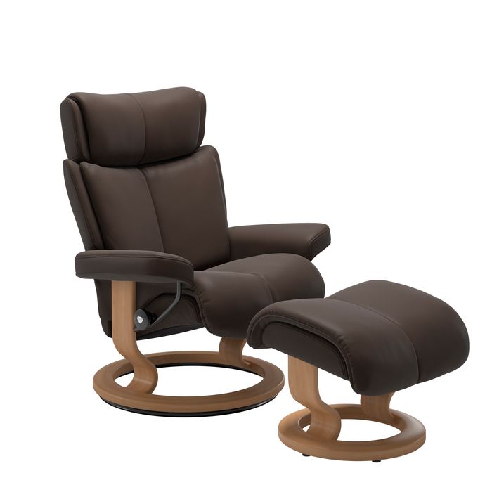 Stressless - Sitzkomfort auf höchstem Niveau: Mit dem Sessel Magic Classic von Stressless wird Sitzen zum wahren Erlebnis. Der wohlig-weiche Bezug aus Echtleder und der stabile Fuß aus Holz bilden eine harmonische Einheit, die nicht nur optisch überzeugt. In Kombination mit der erstklassigen Kaltschaum-Polsterung sind maximale Entspannung und Rund-um-Wohlfühlen rt. Herrlich praktisch: Der flexible Sessel Magic Classic lässt sich um 360 Grad drehen, verfügt über ein innovatives, patentiertes Gleitsystem und passt sich ganz automatisch jeder Ihrer Bewegungen perfekt an. - bei segmueller.de - aus Yadore Produktdaten Für 3640 Euro erhalten Sie einen Relaxsessel in GröÃ?e M in Braun, der eine gute Passform für die meisten KörpergröÃ?en bietet. ![]() ![]() Stressless Relaxsessel mit Hocker braun - Leder Magic M ¦ braun ¦ Maße (cm): B: 82 H: 112 T: 78.0