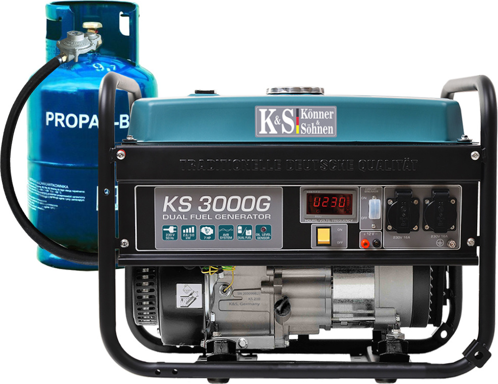 lieferbar-in 3-4 Werktagen bei dirKönner & Söhnen Stromerzeuger KS 3000G, 3,00 in kW, (Hybrid-Generator (LPG/Benzin) mit AVR-Technologie, 1-tlg., 3.0 kW Dual-Fuel Notstromversorgung für lange Betriebszeit), AVR, 15L Tank, K&S Motor, 100% Kupferwicklung, LPG-fähig